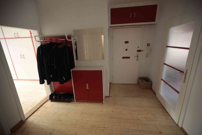 Zwei große Zimmer (2 x c. 20 Quadratmeter, sowie ein Kabinett sind aus dem Vorraum begehbar. Aus dem Kabinett betritt man das größte Zimmer. Auch zentral begehbar sind Küche, Bad und Toilette. Auf den Balkon gelangt man durch die Küche. Die Wohnung ist hell und, trotz zentraler Lage sehr ruhig. Sie ist, durch die Wärmeisolierung leicht heizbar und im Sommer angenehm kühl.