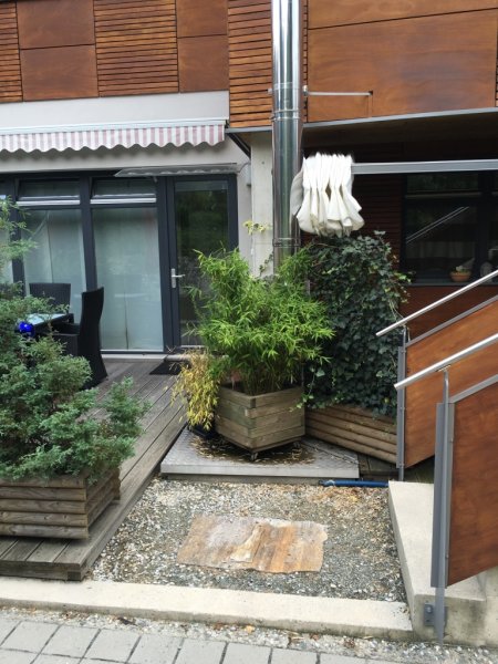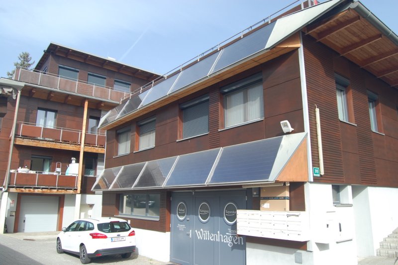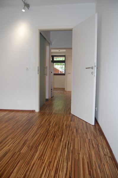 Die helle Wohnung im Grünen besticht außerderm durch ihre Nachhaltigkeit: Eine Pellets – und Solaranlage sind Wärmelieferanten für Heizung und Warmwasser, alle Zimmer sind gut isoliert und mit Holz verkleidet, was beste Eneriewerte garantiert.
