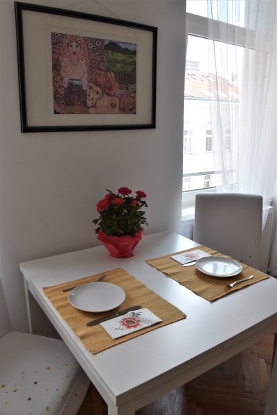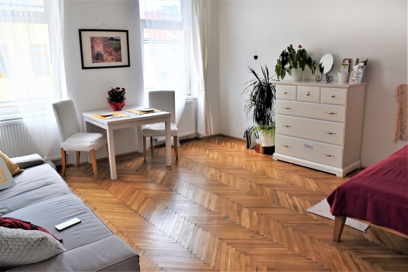 Die helle Altbauwohnung ist modern eingerichtet und komplett ausgestattet. Die Wohnung hat hohen Decken und einen Parkettboden. Sie liegt im 3. Stock und ist bequem mit dem Lift erreichbar. Die Wohnung ist perfekt geeignet für Singles oder Paare.