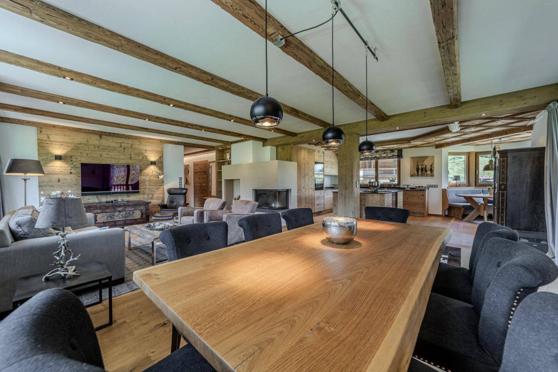Die hier angebotene Wohnung befindet sich im ersten Obergeschoss und erstreckt sich mit ca. 145 m² reiner Wohnfläche über die gesamte Etage. Die gelungene Raumaufteilung sowie die hochwertige, vom heimischen Tischler gefertigte Möblierung bieten eine ideale Nutzung für gehobene Ansprüche. Das Appartement empfängt Sie einladend mit einem kleinen Foyer, das eine Garderobe und ein Gäste-WC offeriert und in die weiteren Räumlichkeiten führt. Der großzügige, offen gestaltete Wohn- und Essbereich mit Deckenbalken beeindruckt mit einer maßgefertigten, schicken Profiküche aus Altholz samt gemütlichem Frühstücksbereich im Erker und einem edlen Esstisch. Der offene Kamin sorgt für eine angenehme Atmosphäre und wohlige Wärme an kalten Wintertagen. Vom Wohnbereich aus gelangt man auf zwei Balkone, welche in Richtung Süden und Osten ausgelegt sind und einen herrlichen Ausblick in die Kitzbüheler Bergwelt bieten. Die Wohnung bietet insgesamt drei Schlafzimmer, jedes mit geschmackvoll ausgestatteten Schränken in Altholz, kombiniert mit grauem Loden. Der Masterbereich verfügt über ein nobles Badezimmer en suite, die zwei Gästezimmer teilen sich ein gemeinsam nutzbares Badezimmer. Selbstverständlich bietet diese Immobilie auch die Annehmlichkeit eines Personenlifts und verfügt über einen Carportstellplatz und einen Außenstellplatz. Beheizt wird die Immobilie über eine Gas-Fußbodenheizung.