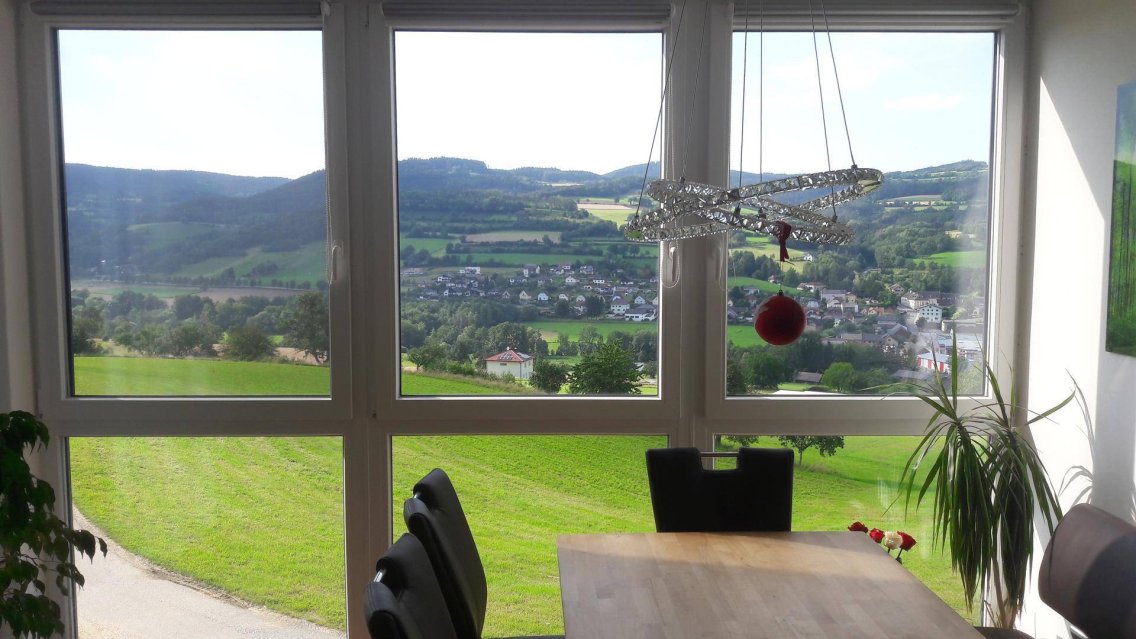 Die 110m2 große Wohnung liegt im 1. Stock eines modernen Wohngebäudes in Pöggstall. Neben dem sehr guten Zustand, besticht die Wohnung vor allem durch einen unfassbaren Panoramablick, tolle Freiflächen, sowie durch die Lage inmitten der Natur. Über den zentralen Vorraum erreichen Sie stirnseitig das Esszimmer mit einer Panoramaverglasung, welche einen traumhaften Ausblick über die Landschaft und Zugang zu einer der beiden Loggien bietet. Weiters gelangt man hier zum großen Wohnzimmer, welches mit einem gemauerten Eckkamin, der zum gemütlichen Verweilen nach einem Spaziergang in der Natur einlädt. Das Schlafzimmer ist vom Vorraum aus zu erreichen und bietet ebenfalls Zugang zur Loggia, welche auch vom Esszimmer erreicht werden kann. Die separat gelegene Küche ist gut ausgestattet, verfügt über ausreichend Platz für einen Esstisch und eine kleine Speisekammer. Von der Küche aus gelangt man auch zur 2. Loggia. Das Badezimmer ist mit einem Waschtisch mit Spiegel- und Unterbauschrank, einer Badewanne, einer großen Regendusche und einem Waschmaschinenanschluss voll ausgestattet. Ein praktischer Abstellraum, sowie ein Kellerabteil, ein Garagenplatz, sowie ein Stellplatz im Freien runden das Angebot ab.