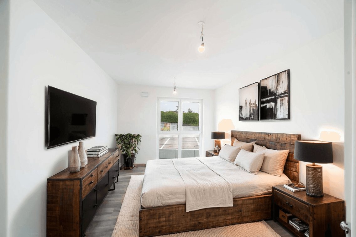 • Schlafzimmer 16,49 m² – Westlage, elektrischer Raffstore zur Verdunkelung