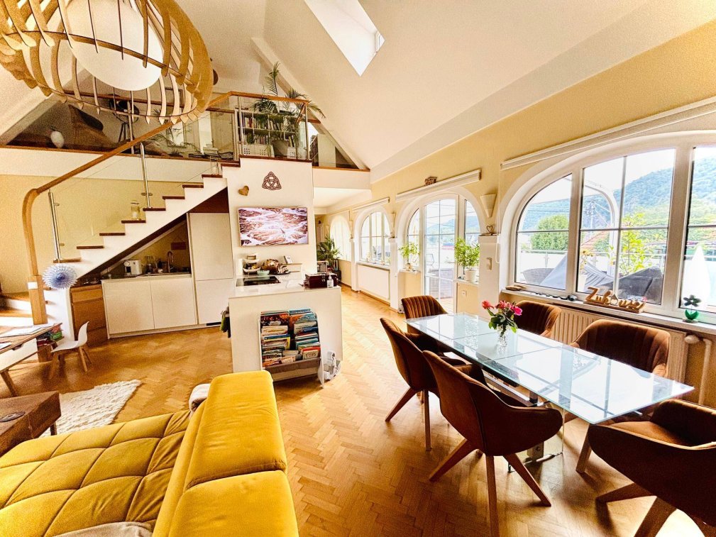 Wohnen, wo andere Urlaub machen! Traumhafte 175 m² Wohnung mit Galerie, Donaublick & 70 m² Terrasse. Nur wenige Schritte zum Sandstrand und direkter Blick auf Dürnstein. Sowohl für Familien, als auch als WG perfekt!