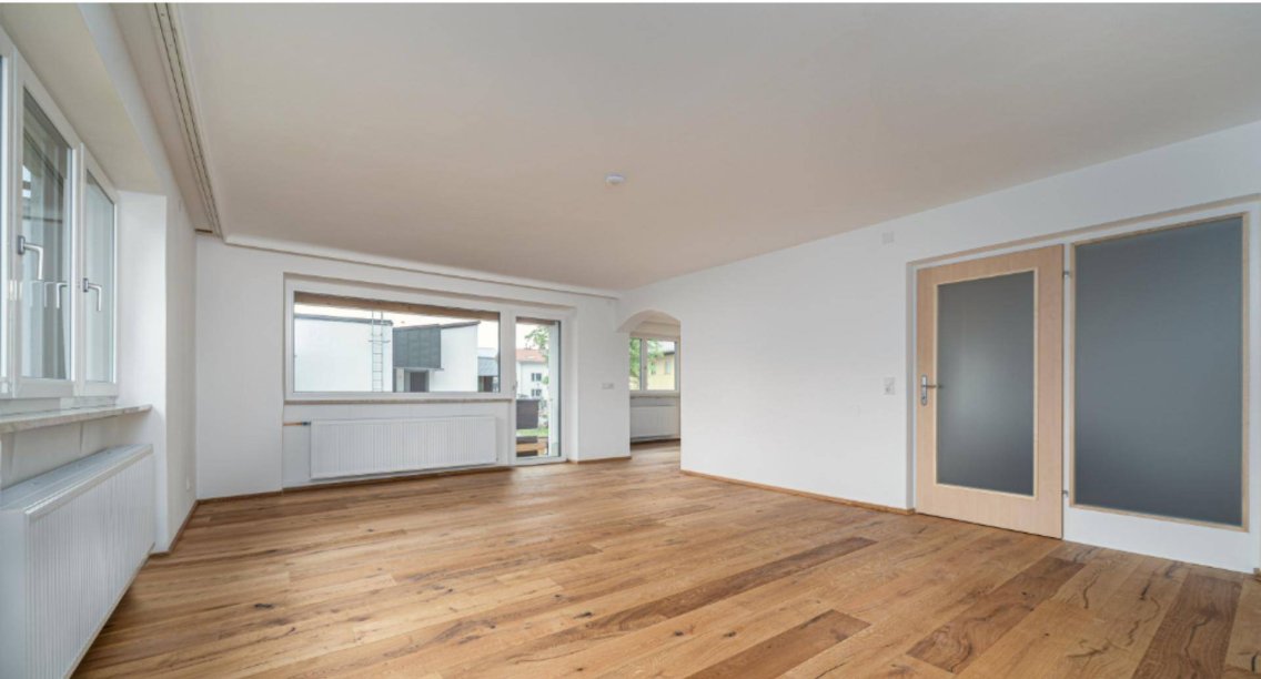 Die generalsanierte und modern gestaltete Immobilie befindet sich im 1. Obergeschoss eines im Jahr 1972/73 errichteten und 2022 thermisch sanierten 4-Parteienhauses und unterteilt sich auf einer Fläche von ca. 120 m² in einen großzügigen Vorraum mit Garderobenfläche, ein WC mit Fenster, ein Tageslichtbadezimmer mit Badewanne, bodenebener Dusche, Waschtisch und Waschmaschinenanschluss, 3 Schlafzimmer, sowie in eine Küche mit angrenzendem Essbereich und ein ca. 33 m² großes, lichtdurchflutetes Wohnzimmer.