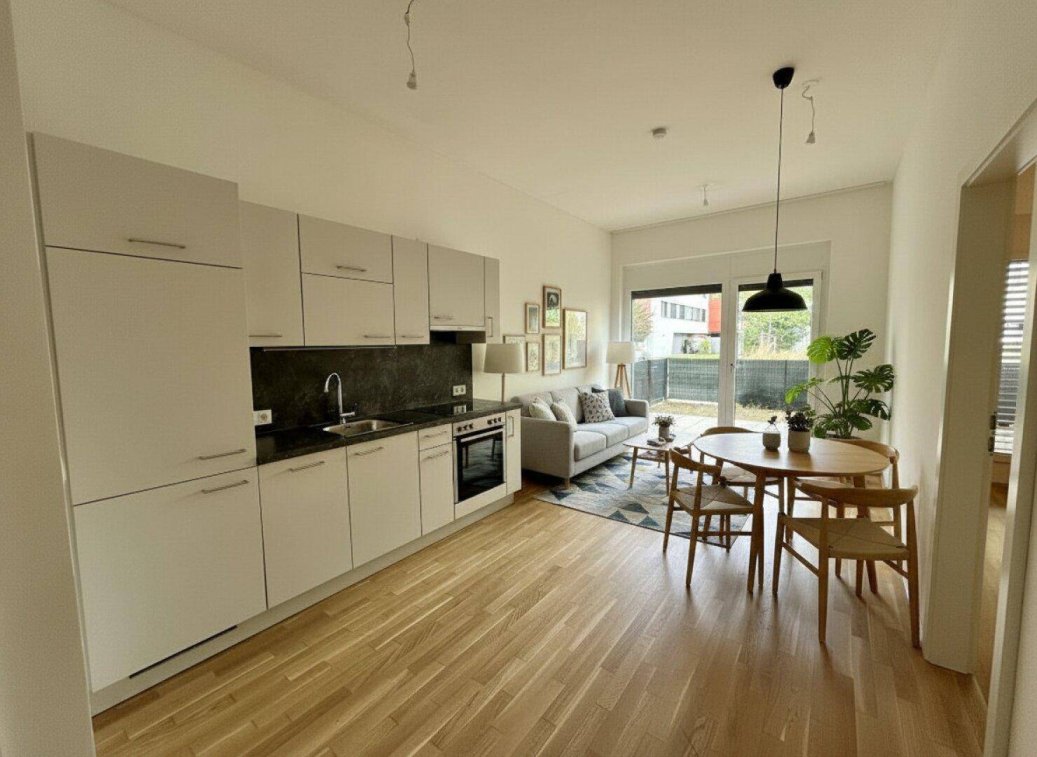 Die hier angebotene 2 Zimmer Wohnung liegt im EG eines Neubaus in einer gefragten Wohngegend. Die modern ausgestattete Wohnung verfügt über eine ca. 41 m2 Nutzfläche sowie einen Garten.Die Umgebung überzeugt mit großzügigen Grünflächen, einladenden Spielplätzen und einem angenehmen Wohnumfeld. Die moderne Wohnhausanlage bietet zahlreiche Zusatzfeatures wie Fahrradräume, Kinderwagenräume, Kellerabteile sowie eine Tiefgarage.Highlights:voll ausgestattete Einbauküche mit ElektrogerätenGartenelektrische AußenbeschattungParkettbodenFußbodenheizung mittels FernwärmeWärmeschutzverglasung sorgt für niedrige EnergiekostenKellerabteilTiefgaragenplätze verfügbarBei Bedarf besteht auch die Möglichkeit einen Stellplatz in der hauseigenen Tiefgarage anzumieten.Kosteninformation: