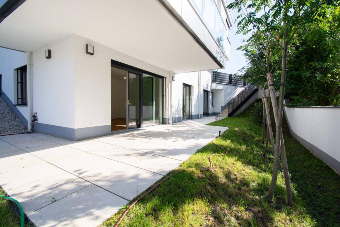 Diese moderne 3-Zimmer-Wohnung mit Garten, ein Zweitbezug, bietet ein hochwertiges Wohnambiente in ruhiger Lage. Bereits beim Betreten der Wohnung empfängt Sie ein großzügiger Vorraum, der ausreichend Platz für einen großen Kleiderschrank und eine Garderobe bietet und so einen einladenden ersten Eindruck schafft. Die schöne Wohnküche ist mit einer Einbauküche, samt hochwertigen Miele-Geräten ausgestattet und lässt keine Wünsche offen – ideal für alle, die Wert auf Design und Funktionalität legen.Das 12 m2 große Schlafzimmer begeistert mit einem begehbaren Schrankraum, der für zusätzlichen Stauraum sorgt und ein aufgeräumtes Wohngefühl ermöglicht. Ein weiteres, gut geschnittenes Zimmer eignet sich perfekt als Kinderzimmer, Homeoffice oder Gästezimmer. Das Badezimmer präsentiert sich großzügig und elegant mit einer bodengleichen Dusche, einer Badewanne, einem Doppelwaschbecken, einem Handtuchheizkörper sowie einem praktischen Anschluss für die Waschmaschine und eine zweite Steckdose für einen Trockner. Die separate Toilette mit Handwaschbecken (für Gäste) rundet das durchdachte Raumkonzept ab.Ein besonderes Highlight dieser Wohnung ist die 31 m² große Terrasse, die von allen drei Zimmern aus begehbar ist – ein echtes Plus für sonnige Stunden im Freien oder entspannte Abende mit Freunden. Der direkt angrenzende, rund 118 m² große Garten mit leichter Böschung bietet zusätzlichen Erholungsraum im Grünen.Ausstattung:Effizientes Heiz- und Kühlsystem mit WärmepumpeEinzeln regulierbare Fußbodenheizung in allen Zimmern inkl. BadezimmerEdle Echtholz-DielenTerrassenverfliesung mit FeinsteinzeugEinbruchshemmende Wohnungseingangstür der Klasse WK3Holz-Alu-Fenster und Balkontüren mit 3-fach IsolierverglasungBequem bedienbare elektrische Raffstores mit FunkfernbedienungExklusive Sanitärausstattung & Armaturen von Villeroy & Boch und HansgroheElegante Feinsteinzeug-FliesenKomfortabler LiftGaragenplätze optionalKellerabteilDiese Gartenwohnung vereint hochwertige Ausstattung, durchdachte Raumaufteilung und großzügige Freiflächen zu einem stilvollen Zuhause.Vereinbaren Sie noch heute einen Besichtigungstermin!Wir weisen darauf hin, dass zwischen dem Vermittler und dem zu vermittelnden Dritten ein wirtschaftliches Naheverhältnis mit gesellschaftlicher Verflechtung besteht.Der Immobilienmakler erklärt, dass er – entgegen dem in der Immobilienwirtschaft üblichen Geschäftsgebrauch des Doppelmaklers – einseitig nur für den Vermieter tätig ist.