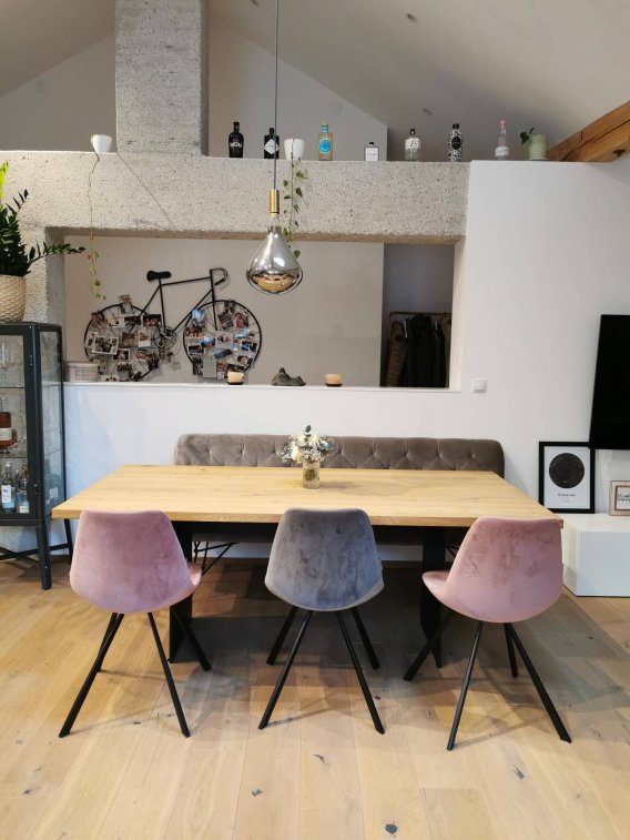 Die offene Küche, ausgestattet mit modernen Geräten, umfasst einen speziell entworfenen Kitchen Corner, der sich perfekt als stilvolle Kaffeebar eignet – ideal für den morgendlichen Kaffee oder als geselliger Treffpunkt.