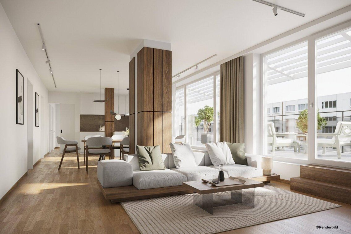 DELTA Immobilien bietet Ihnen eine TOP sanierte Penthousewohnung nahe U-Bahn - Frei ab 1.12.2025Zur Vermietung gelangt eine hervorragend geschnittene Penthousewohnung in dem 2025 neu ausgebauten Objekt.Optional kann auch ein Tiefgaragenplatz für EUR 130,--/inkl. BK und Steuer im Monat, angemietet werden. Die Wohnung besticht durch intelligente Planung, einen cleveren Grundriss und einer erstklassigen Infrastruktur. Die Wohnungsgröße mit 4 Zimmern: ca. 108m² + ca. 111m² großzügige Terrassenfläche. Ausstattungsstandard:Bei der Realisierung des Neubaus wurde großer Wert auf eine hochwertige Ausstattung sowie langlebige Materialien gelegt: Moderne Küche mit MarkengerätenEichen-ParkettGegensprechanlage 3fach Verglasung der FensterStilvolles Bad mit ausgewählten Marken-SanitärproduktenFußbodenheizungelektr. RaffrollosFahrradraumPersonenaufzuggroßzügiger AussenflächeKlimaanlage Großzügige, barrierefreie Eingangs- und AußenbereicheKücheninsel mit integriertem Dunstabzug in der HerdplatteHolzriegelbau2fach Wasserauslass sowie Licht und Steckdosen auf der Aussenfläche