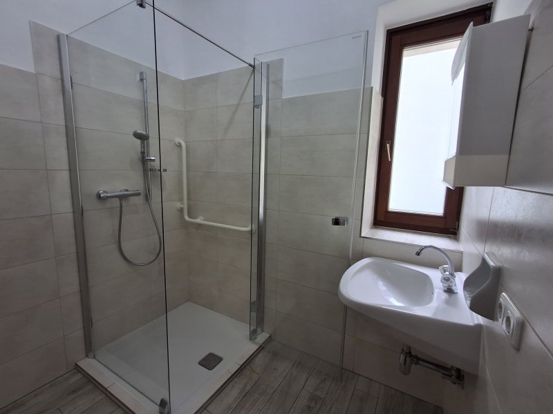 Ca. 73 m², zentrale Lage, nur 5 Minuten zu Fuß zu Supermarkt und Innenstadt. Schlafzimmer gartenseitig, modern ausgestattete Küche, Badezimmer mit Dusche, separates WC, Abstellraum, 2 Balkone, Gartenmitbenutzung, Erdkeller.