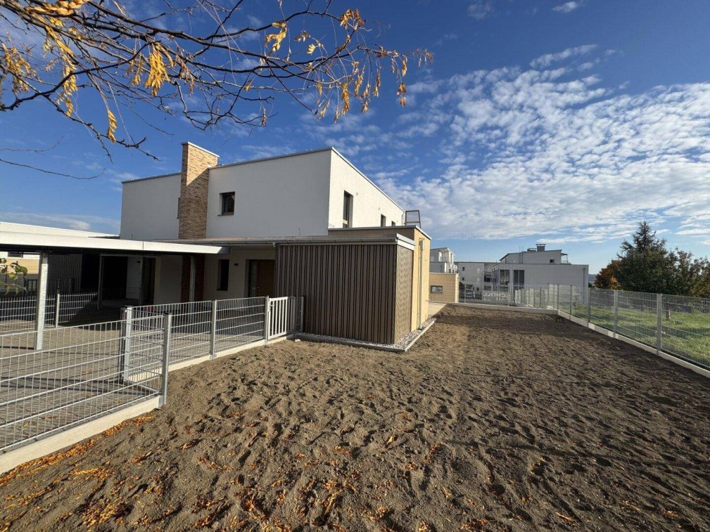 Alle Gebäude verfügen über eine hochwärmegedämmte Gebäudehülle nach modernsten Standards. Die Kombination einer effizienten Erdwärmepumpe mit ca. 120m - Tiefenbohrung und der eigenen Photovoltaikanlage schafft eine unabhängige und nachhaltige Heizungslösung. Abgeschlossen wird das Energiekonzept mit einer Betonkernaktivierung, wobei die Decke als Heizung im Winter und als Kühlung im Sommer genutzt wird. (Klimaanlage)Ihr neues ZuhauseDie Einheiten haben jeweils eine Wohnfläche von 113 m² und einen Eigengarten von 141m². Entspannen Sie mit Ihrer Familie und Freunden auf der 24 m² Terrasse oder Ihrem eigenen Garten.Ihr neues Zuhause betreten Sie durch einen geräumigen Vorraum mit ausreichend Platz für Garderobe sowie angeschlossenem Gäste WC. Vom Vorraum aus gelangen Sie sowohl in den Hauswirtschaftsraum als auch in den ca. 35 m² großen Wohn-Essbereich. Hier befindet sich auch die hochwertige DAN-Küche inkl. Kücheninsel und Bosch Geräten!Im Obergeschoß befinden sich 3 Schlafräume mit großzügigem Elternschlafzimmer, ein extra WC und ein helles Badezimmer mit Fenster, Badewanne, Dusche und bereits alle Badezimmerschränke.