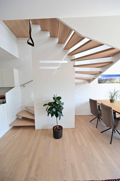 Diese Loftwohnung punktet nicht nur mit großzügigen 80 m² Wohnfläche, zwei Zimmern und zwei Wohnebenen, sondern ist auch bei Ausstattung, Wohnkomfort und Design ein Hingucker. Das beginnt bei der Fußbodenheizung, führt über den großen loftartigen Wohn /Essbereich mit offener Maßeinbauküche und bodentiefen Panoramafenstern bis hin zu Garderobe mit perfekten Maßeinbauten vom Tischler. Ein hochwertig ausgestattetes Bad steht zur Verfügung. Die Wohnung ist durch die zahlreichen Fenster und Deckenöffnungen schön mit Tageslicht ausgeleuchtet. Weitere Highlights warten im Außenbereich, denn hier befinden sich zwei Terrassen. Besonders die große Dachterrasse sei hier erwähnt. Eine moderne Holzstiege führt nach oben und offenbart herrlich freie 360°-Ausblicke über die Dächer der Stadt und auf alle umgebenden Berge. Traumhaft!