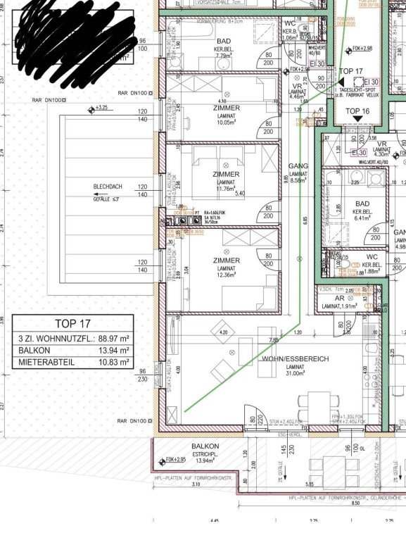 • Raumaufteilung: Schlafzimmer, Kinderzimmer, Kinderzimmer, Wohnzimmer, Küche, Vorzimmer, Badezimmer (Dusche + Badewanne), separates WC sowie Abstellraum