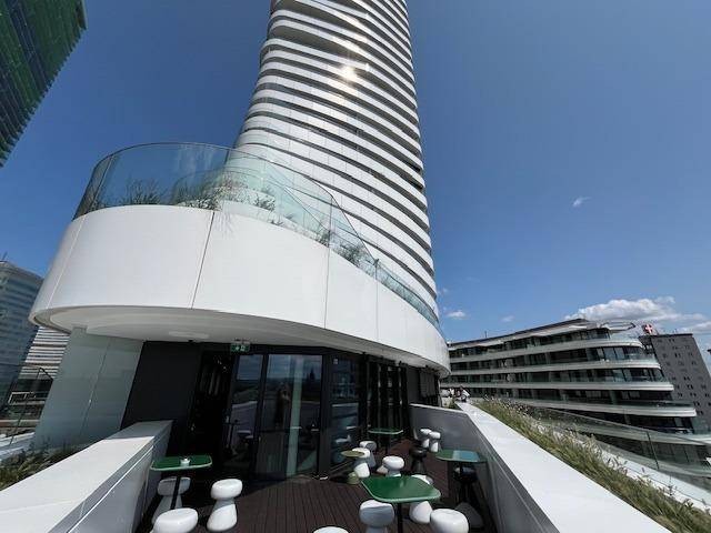 Danubeflats bietet eine elegante 5 Star Lobby mit Doorman, einen wunderschönen Spa-Bereich mit Sauna, Fitness, Ruhezone, Yogaraum, ganzjährig beheiztem Pool, Cocktailbar, Business Lounge, Event Lounge, Executive Lounge, Sky-Garten, Parkhaus mit Car-Sharing Angebot, Gastronomie