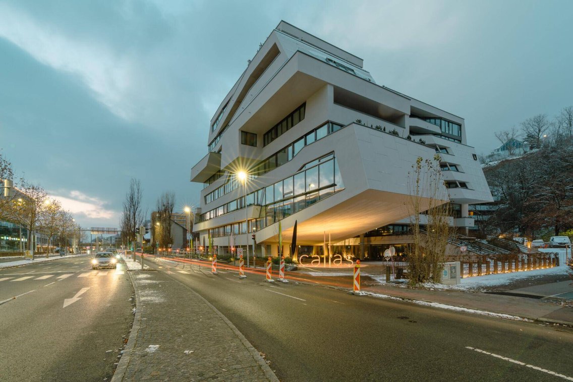 Am westlichen Rand der Innenstadt, in der Höttinger Au, hat die Planet Bauträger GmbH mit dem c a l l a s ein für Innsbruck einzigartiges Gebäude errichtet. Skulptural steht der dynamische Baukörper im Stadtraum und spricht eine außergewöhnliche architektonische Sprache. Das c a l l a s verfügt über 62 Wohnungen, eine Tiefgarage mit 56 Stellplätzen, sowie Büroflächen im Ausmaß von 1.400 m².