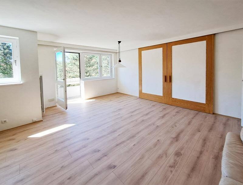 Die sonnige Wohnung mit perfektem Raumprogramm wirkt herrlich leicht! Von der großzügigen Diele mit Platz für die Garderobe geht es weiter in den lichtdurchfluteten Wohn- und Essbereich mit Zugang auf die Loggia, auf der sich die Sonne und ein Ausblick in den parkähnlichen Allgemeingarten genießen lässt. Perfekt integriert ist die neue, stylische Küche mit Geschirrspüler, Ceranfeld mit Backrohr und Kühlschrank. Das ruhige Schlafzimmer ist durch eine Schiebetür vom Wohnbereich getrennt. Das in Weiß verflieste, neuwertige Bad verwöhnt mit Dusche, Waschtisch und einer Waschmaschine, WC extra.