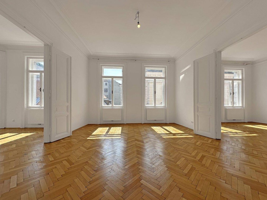 Zur Vermietung gelangt eine helle 4-Zimmer-Wohnung im 3. Liftstock eines wunderschönen Altbaus in gutbürgerlicher Wohnlage in Citynähe (Spittelbergviertel).Durch den großzügigen Vorraum gelangt man in zwei der Zimmer, welche altbautypisch durch Flügeltüren mit einem weiteren Zimmer und dem zentral gelegenen Erkerzimmer verbunden sind, sowie in das Bad und die WCs.Die große Küche erreicht man durch eines der Zimmer. Diese ist voll ausgestattet mit einer neuen Einbauküche samt Geräten (Backrohr mit Induktionskochfeld, Umlufthaube, Geschirrspüler, Kühlschrank/Gefrierkombination).Das natürlich belichtete Badezimmer verfügt über eine geräumige Dusche mit Verglasung sowie zwei Waschbecken und ist bereits mit Spiegel und Lampen ausgestattet. Ein Handtuchtrockner und ein Waschmaschinenanschluss sind ebenfalls vorhanden.Die Wohnung verfügt über zwei WCs, eines davon mit Handwaschbecken.Zur Wohnung gehört ein kleiner Klopfbalkon.Der Immobilienmakler erklärt, dass er – entgegen dem in der Immobilienwirtschaft üblichen Geschäftsgebrauch des Doppelmaklers – einseitig nur für den Vermieter tätig ist.