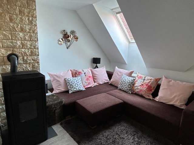 Für die Wohnung gibt es eine Stromheizung, jedoch ist ein moderner Pelletsofen (Fernsteuerung) vorhanden.