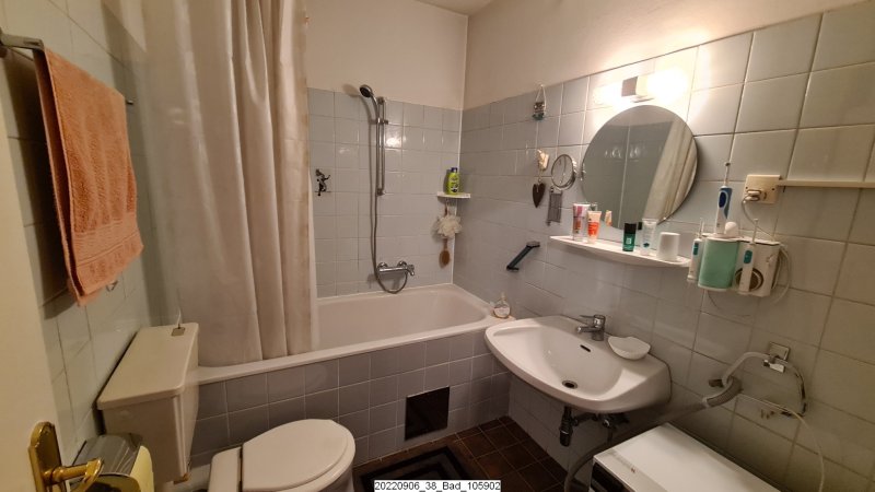 - Bad mit Wanne/Dusche, Waschtisch, Waschmaschine, fester Haartrockner und großer Schrank