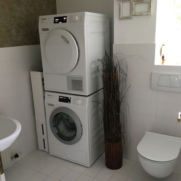 Außerdem gibt es ein Badezimmer mit Fußbodenheizung, beheiztem Handtuchhalter, einer großen Dusche und Badewanne. Die zwei WCs, eines hier und eines im separaten Gäste-WC wurden vor drei Jahren erneuert. Im großen Gäste-WC ist genug Platz für Waschmaschine und Trockner.