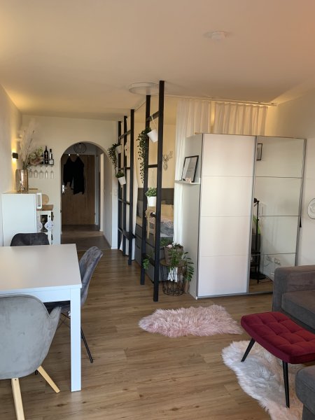 Diese Garçonnière ist eine wahre Wohlfühloase, die zuletzt im Jahr 2022 renoviert und modern eingerichtet wurde. Sie verfügt über alle notwendigen Annehmlichkeiten, einschließlich einer gut ausgestatteten Küchenzeile, einem separaten, modernen WC und einem maßgeschneiderten Badezimmer inklusive Badewanne. Der Schlafbereich ist mit Vorhängen abgetrennt, was für zusätzliche Privatsphäre sorgt. Von hier aus können Sie den atemberaubenden Blick auf die umliegenden Berge genießen und die Schönheit der Natur erleben. Die Wohnung ist gut durchdacht und bietet alles, was man für ein komfortables Leben benötigt. Das stilvolle Design und die hochwertigen Materialien tragen dazu bei, dass Sie sich in dieser Wohnung wie zu Hause fühlen werden.