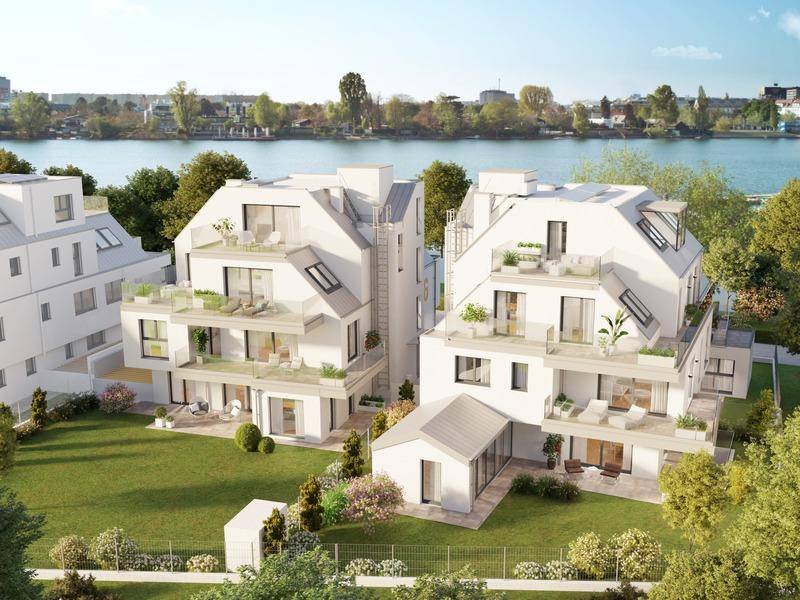 An einer der Top-Adressen direkt an der unteren Alten Donau erwartet Sie diese elegante Gartenmaisonette-Wohnung. Das Herzstück ist die großzügige Wohnküche, die beinahe nahtlos in den über 300 m² großen Garten übergeht – ein grünes Paradies direkt vor Ihrer Tür und dahinter gleich das Wasser. Das Hauptschlafzimmer punktet mit eigenem Bad, die beiden weiteren Zimmer mit direktem Terrassen- und Gartenzugang. Zusätzlichen Raum für Hobbies, Wellness, Ordination oder Home-Office bietet der direkt angeschlossene zusätzliche Hobbyraum im Keller mit Lichthof, edlen Bodenbelägen und einer behaglichen Fußbodenheizung.