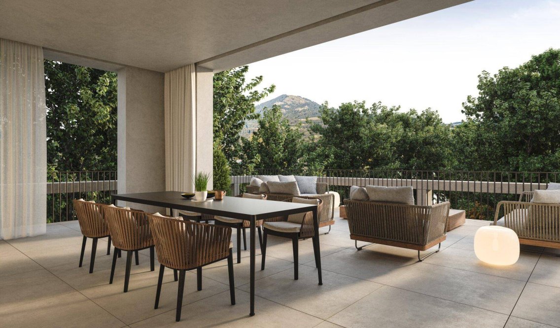 Der offen gestaltete und rund 52 m² große Wohnbereich, der über einen offenen Kamin verfügt, ist der Mittelpunkt der Wohnung. Durch die großen und bodentiefen Fenster ist der Raum lichtdurchflutet und freundlich. Dem Wohnbereich ist eine überdachte Terrasse vorgelagert, die bei jeder Witterung nutzbar ist. Der Küchen- und Essbereich, zu dem auch eine Speis gehört, ist in den Wohnbereich integriert - bei Bedarf besteht die Möglichkeit, die Küche sowie den Essbereich vom Wohnbereich zu separieren.Master Bedroom
