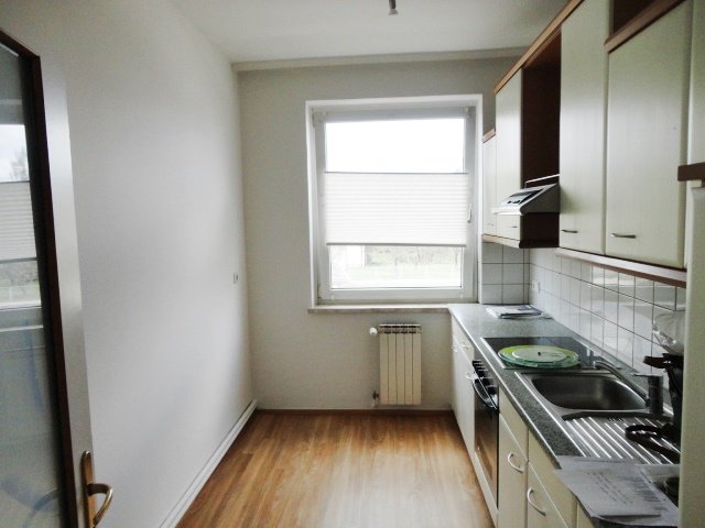 Küche nach N mit Laminat, großem Fenster für viel Tagelicht mit 7,30 m2
