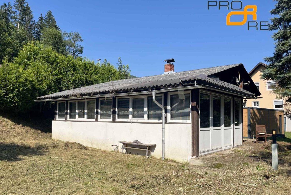 Ruhig gelegenes Ferienhaus in Feistritz bei Feldkirchen, ausgeführt als 2 Zimmer- Küche/ Bad/ WC Bungalow mit ca. 40 m² Wohnfläche plus rd. 37m² Vollkeller mit Wannenbad + 2. WC.
