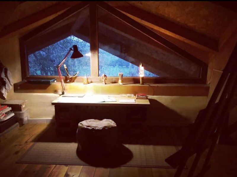 - Wohnhaus von ca. 80 m² in Biobauweise mit gestampften Erdsäcken.