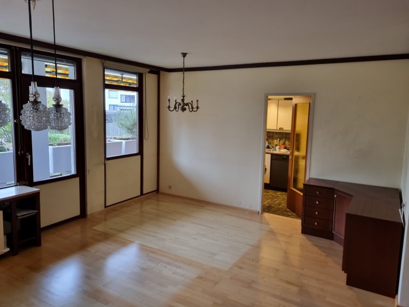 95 m² Wohnnutzfläche, Loggia mit 11 m² (für Ausbau geeignet), Car-Port-Abstellplatz, Kellerabteil, Gartenmitbenutzung, großer Gemeinschaftskeller (Wäsche, Trocknen, Fahrradkeller), Wohnung im Hochparterre, Baujahr 1978/79, altersgerecht in gutem Zustand, erbaut und betreut vom Siedlungswerk der SAFE, Elektroheizung, Kamin für Ofeneinbau vorhanden, Bad und WC getrennt, Badewanne, 2 größere und 2 kleinere (Schlaf-)Zimmer, großer Wohnraum mit angrenzender abgetrennter Einbau-Küche (alt), Kabel-TV-Anschluss vorhanden, Betriebskosten ohne Strom (-heizung) incl.