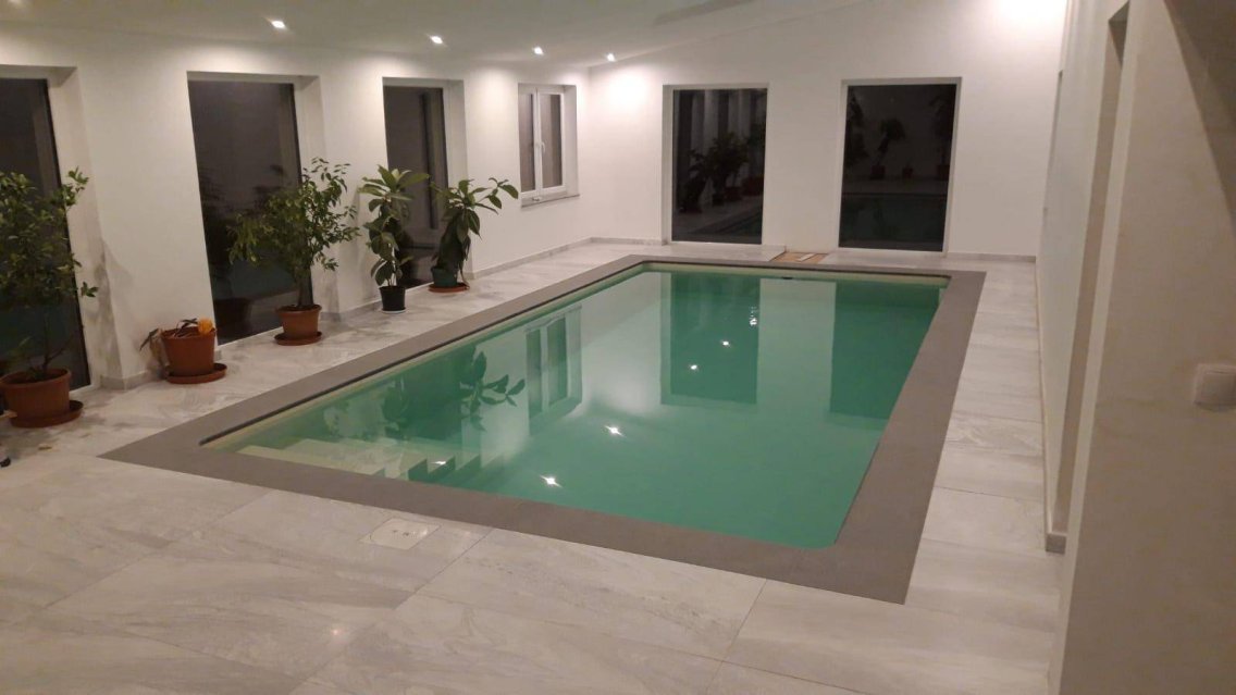 Das Haus ist voll unterkellert und wunderschön angeordnet. Vor etwa 5 Jahren entstand eine beheizte Indoor-Schwimmhalle mit einem tollen Salzwasser-Pool und einer Ruheoase, welche vom Wohnzimmer aus zu begehen ist..