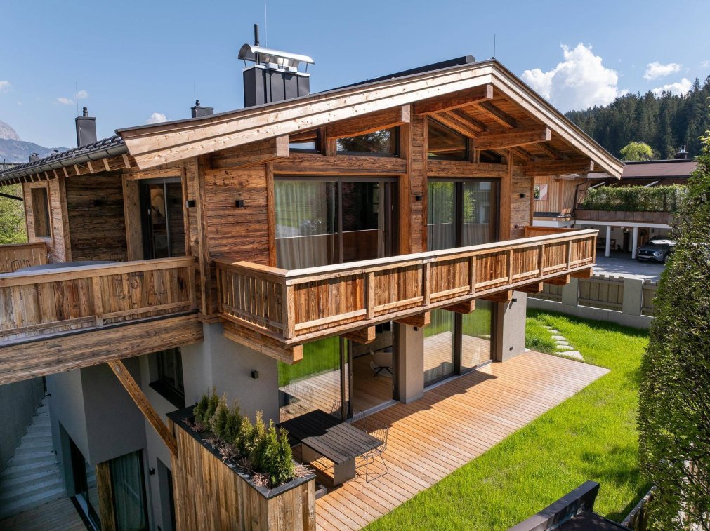 Das zweistöckige Chalet ist in zwei großzügige Wohneinheiten aufgeteilt – eine Penthouse-Maisonette und eine Garten-Maisonette – und bietet vielfältige Möglichkeiten für ein stilvolles Zusammenleben von Familien oder als Kombination aus privater Nutzung und Gästebereich. Zur Ausstattung gehören eine Zentralheizung mit Luftwärmepumpe, ein Gäste-WC, ein Garten und ein Badezimmer mit Badewanne. Die Lage in Reith bei Kitzbühel, nur wenige Minuten von Kitzbühel entfernt, bietet Zugang zum Golfplatz Kitzbühel-Schwarzsee Reith und dem Kitzbühel Country Club in unmittelbarer Nähe.