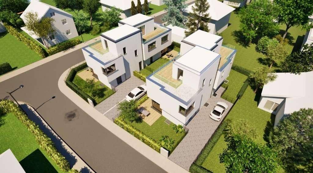 Errichtet wird ein massives Doppelhaus mit Keller und Dachgeschossausbau. Der Garten orientiert sich in Richtung Süd-West.