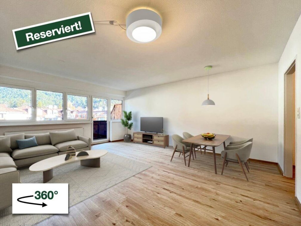 Sowohl das Wohnzimmer als auch das Schlafzimmer bieten Zugang zum nordwestlich ausgerichteten Balkon, der mit einem faszinierenden Ausblick auf den Telfer Hausberg "Hohe Munde" beeindruckt.