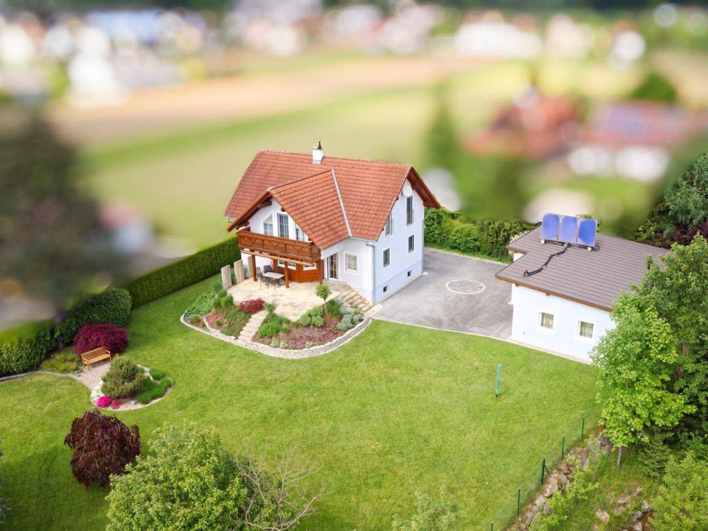 Im Erdgeschoß erwartet Sie ein einladender Windfang mit Garderobe und praktischem Abstellraum. Das Badezimmer ist mit Dusche, WC und einem Waschmaschinenanschluss ausgestattet. Ein weiteres Zimmer wird derzeit als Büro genutzt. Der offen gestaltete Wohn- und Essbereich mit wohnlichem Kachelofen führt zur Terrasse und in die gut ausgestattete Küche mit Speis.Das Obergeschoß bietet ein gemütliches Wohnzimmer mit Balkon, zwei Schlafzimmer, ein Badezimmer mit Badewanne und Dusche, ein separates WC sowie ein weiteres Zimmer, das aktuell als begehbarer Kleiderschrank genutzt wird.Der gepflegte Keller (ca. 60 m²) ist auch von außen begehbar und vielseitig nutzbar. Beheizt wird das Haus mit einer Öl-Zentralheizung (18,5 kW) und wird durch eine Solarthermieanlage und den Kachelofen ergänzt. Je nach Raum sind Heizkörper oder eine Fußbodenheizung vorhanden.Die hochwertige Möblierung ist inkludiert und kann auf Wunsch übernommen werden.Nebengebäude