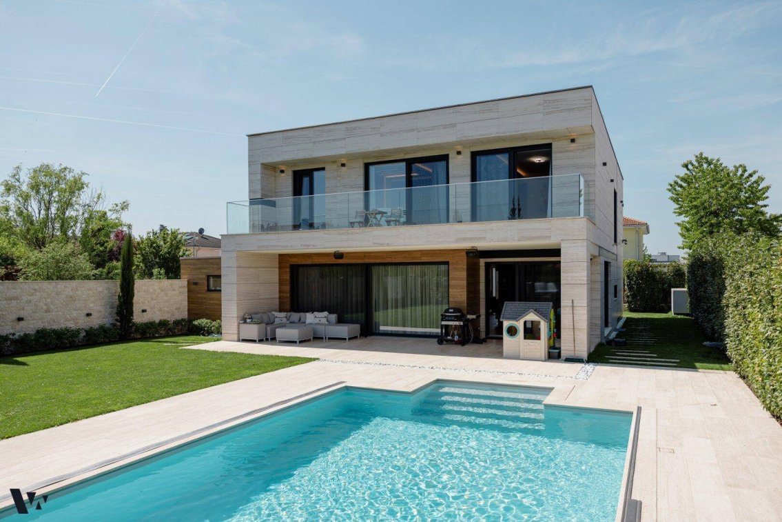 Wer den absoluten Luxus und kompromisslosen Wohnkomfort sucht, der kommt bei dieser Traumvilla voll auf seine Kosten. Die etwa 380 m² Wohnnutzfläche verteilen sich auf 4 Schlafzimmer im 1. Stock, einen feudalen Wohn-Essbereich mit integrierter High-End-Küche von Siematic im Erdgeschoß, sowie einen vielseitig nutzbaren Wohnkeller, der Raum für Wellness, Gäste oder Home-Entertainment bietet. Auf einem ca. 740 m² großen Grundstück in absoluter Ruhelage gelegen, vereint das Haus klare Linien mit exklusiven Materialien: Eine hinterlüftete Steinfassade und massive Ziegelbauweise sorgen für beste Isolierung, während hochwertige Haustechnik und eine zentrale Klimaanlage ein Wohngefühl schaffen, das gleichermaßen repräsentativ wie familiär ist. Ein absolutes Highlight ist der traumhafte Garten mit beheiztem Pool, stilvollem Pavillon und großzügiger Sonnenterrasse – perfekt für entspannte Stunden oder besondere Anlässe.Eckdaten:KaminCarportPV-AnlageAlarmanlageSonnenterrasseLuftwärmepumpeFußbodenheizung738 m² GrundflächeZentrale Klimaanlage5 Zimmer + Wohnkellerca. 380 m² WohnnutzflächeBowers & Wilkins SoundanlageLuxusbäder mit Gessi-ArmaturenVollautomatische Siematic-KücheLichtinstallationen von LichtprojektDoppelgarage mit FußbodenheizungHome-Bus-System mit iPad-SteuerungTravertino-Steinfassade mit HinterlüftungGarten mit beheiztem Swimmingpool und Pergola aus DiamantnussKontakt:Für weitere Fragen oder Besichtigungen stehe ich Ihnen jederzeit sehr gerne unter [Telefonnummer entfernt] oder unter [E-Mail-Adresse entfernt] zur Verfügung.Wir weisen darauf hin, dass zwischen dem Vermittler und dem Auftraggeber ein familiäres oder wirtschaftliches Naheverhältnis besteht.Der Vermittler ist als Doppelmakler tätig.