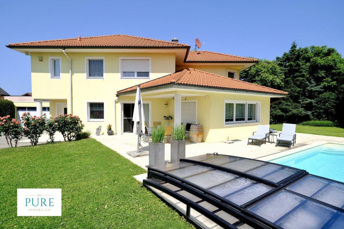 In den Verkauf gelangt eine traumhaft schöne "VILLA TOSKANA" mit mediterraner Poollandschaft, stylischem SPA & exklusiver Ausstattung. Sie erstreckt sich auf einem herrlichen Eigengrund von ca. 1.351m² auf 3 Etagen und besticht durch ein hervorragendes & großzügig angelegtes Raumkonzept und einen äußerst attraktiv gestalteten Terrassenbereich mit schönem Blick ins Grüne mit Altbaumbestand - und das alles in ca. 30 Minuten von Wien entfernt.Im Jahre 2008 in Ziegelmassivbauweise errichtet, punktet dieses stylische Einfamilienhaus mit seiner 1A Bauqualität, mit einem modernen & energieeffizienten Heizsystem mittels Wasser-Sole Wärmepumpe mit Kühlfunktion sowie einem hochwertig ausgeführten Dichtbetonkeller mit Heimkino & Weinkeller. ERDGESCHOSS:Großzügig konzipiert empfängt das Entree und führt in den schön angelegten Wohn- Essraum. Das offene Wohnkonzept und eine Raumhöhe von ca. 4m im Wohnbereich verstärken die Großzügigkeit der Räume. Gediegene Holzböden, sowie ein perfekt platzierter Kaminofen mit modernem Sichtfenster vermitteln ein luxuriöses wie auch äußerst behagliches Wohngefühl.Die schicke DAN Küche in "Creme" ist sehr gelungen in das Raumkonzept integriert und bietet aufgrund der guten Küchenplanung mit netter Bar einen geselligen Platz, an dem man gerne auf ein Gläschen verweilt. Besonders schön ist hier der Blick in den Garten.Ein wahres Highlight mit hohem Wohlfühlfaktor erfahren Sie im stylischen SPA Bereich, ausgestattet mit einer äußerst gepflegten Qualitätssauna von GRUBER sowie einer Komfort-Dusche & Ruhezone. Praktisch ist hier der direkte Zugang zur Poollandschaft & in den Garten. Zudem komplettieren ein angenehm großes Gästezimmer bzw. Büro sowie eine separate Gästetoilette das Wohnvergnügen auf dieser Ebene.Für zusätzlichen Komfort sorgt ebenso eine Doppelgarage, die Sie sicher & bequem direkt ins Haus führt. Diese bietet den Platz für mindestens 2 bis 3 Fahrzeuge.OBERGESCHOSS:Über eine gediegene Nussholztreppe erschließt sich das Obergeschoss, ebenfalls lichtdurchflutet auf Grund der großen Fensterfront im Treppenhaus. Alle Fenster dieser Etage verfügen über elektronisch gesteuerte Rollläden und Insektenschutzgitter. Der schön angelegte Master-Bedroom beeindruckt durch eine geschickte Planung mit einem stilvollen Ensuite-Bad und angenehm großem Schrankraum. Hier genießen Sie viel Privatsphäre und Ruhe. Eine barrierefreie Glasdusche, eine Badewanne sowie ein zusätzliches WC & ein Doppelwaschbecken verleihen dem großzügigen Bad ein behagliches SPA-Feeling.Zwei weitere freundliche Kinderzimmer und ein Abstellraum, ebenfalls ausgestattet mit warmen Parkettböden, komplettieren den oberen Wohn- Schlafbereich. Ein zusätzliches Bad im erfrischenden Fliesen-Design verfügt über eine geräumige Glasdusche & ein Doppelwaschbecken und bietet somit jeglichen Komfort. Ebenso findet sich auch in dieser Etage eine separate Toilette.UNTERGESCHOSS:Der speziell hochwertig ausgeführte Dichtbetonkeller, beinhaltet nicht nur ein exklusiv ausgestattetes Heimkino, sondern hier lässt sich auch guter Wein bestens lagern. Des weiteren bietet er Platz für eine Vorratskammer, einen Lagerraum sowie einen großen Technik & Waschraum, in dem die Heiztechnik untergebracht ist.OUTDOOR:Die großzügige Liegenschaft verfügt über wunderschön angelegte Außenflächen, umgeben von viel Grün & herrlichem Altbaumbestand. Das Pool, als Herzstück des Gartens, ist mit einer beigen Folie ausgekleidet und verleiht somit dem Wasser ein mediterranes Türkisblau. Gemeinsam mit den warmen Sandsteinplatten vermittelt es ein wahres Urlaubsfeeling! Auf Grund der Überdachung & der romantischen Poolbeleuchtung genießt man angenehme Temperaturen auch noch spätabends oder an kühleren Tagen. Verschönert wird die Poollandschaft durch eine moderne Außendusche, die von einer hübschen Steinmauer ummantelt ist.Automatisch gegossen wird der Garten mit einer PIPE LIFE Bewässerungsanlage. Ein Gartenroboter sorgt für saftiges Grün & mehr Zeit, um den Garten entspannt genießen zu können. Gartengeräte sowie die Pooltechnik finden in der hübschen & solide gebauten Gartenhütte Platz. Die vorgelagerte, zusätzliche Terrasse wird gerne noch als nettes & gemütliches Schattenplatzerl genutzt.KURZ & GUT: eine äußerst attraktive Villa mit exklusiver Ausstattung, herrlicher Poollandschaft & tollem SPA-Bereich im beliebten südlichen Speckgürtel Wiens & bester Anbindung.HIGHLIGHTS & AUSSTATTUNG:Attraktive Villa im Toskana-Stil auf herrlichem Eigengrund 1.351m²Mediterrane Poollandschaft mit Sandstein-TerrassenHervorragendes Raumkonzept mit großzügig angelegten WohnräumenHochwertig ausgeführter Dichtbetonkeller mit Heimkino & Weinkeller Moderner & offener Wohn-Essraum mit KaminToller SPA-Bereich mit Sauna zum EntspannenPool mit Überdachung & BeleuchtungFußbodenheizung mit KühlungGartenbewässerung PIPE LIFEFix verkabelte Alarmanlage3 Bäder I 3 WCRollläden elektronisch steuerbarDoppelgarage mit direktem Zugang4 SchlafzimmerEntkalkungsanlageu.v.m.Ich freue mich auf Ihre Anfrage und berate Sie gerne!VERKAUF & BERATUNGAnna SchlachterStaatlich konzessionierte Immobilienmaklerin