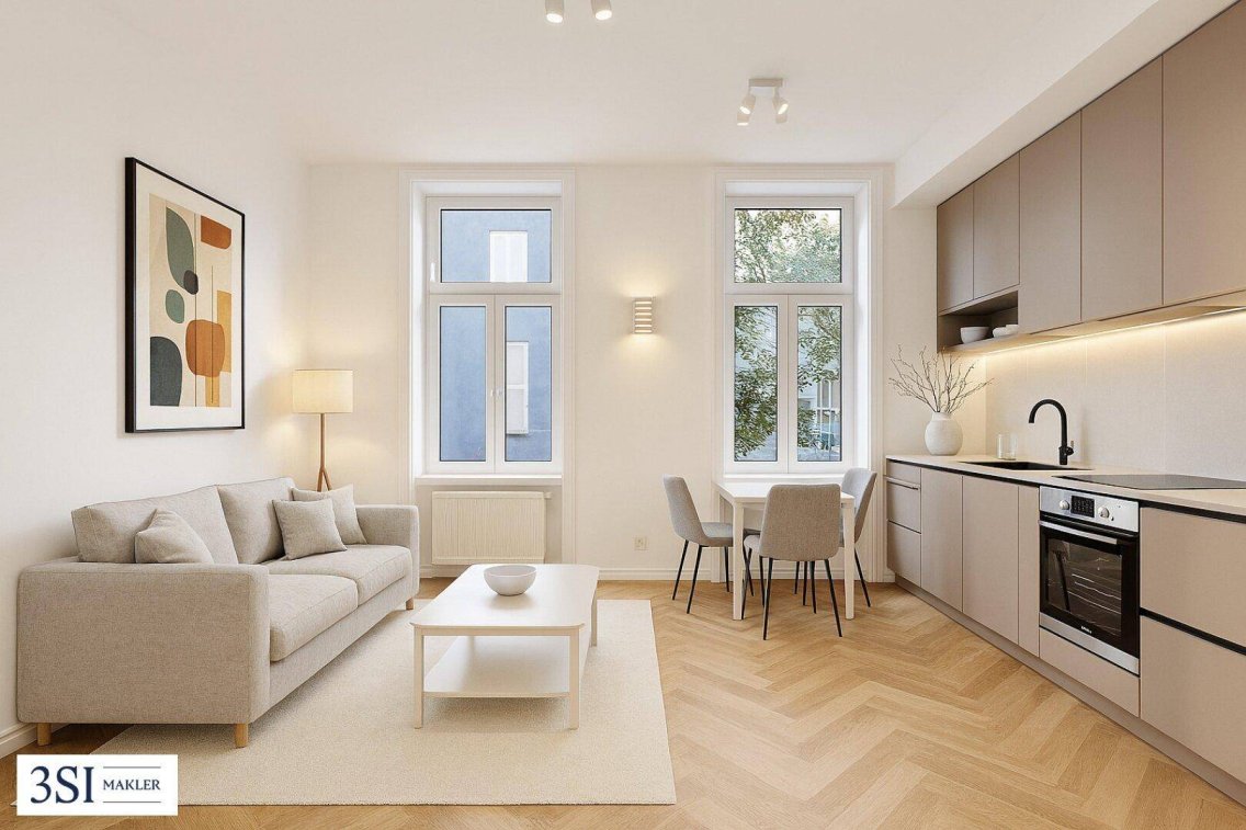 Diese liebevoll sanierte 1-Zimmer-Wohnung im 2. Obergeschoß (Lift ist vorhanden) eines klassischen Wiener Altbaus verbindet zeitlose Eleganz mit moderner Ausstattung. Die rund 30 m² große Garçonnière wurde umfassend renoviert und präsentiert sich im Erstbezug – perfekt für Singles oder Pärchen.Der stilvolle Eichen-Parkettboden in Fischgrätverlegung sorgt für ein edles Wohnambiente. Große Fensterflächen lassen viel Tageslicht in den Wohnraum. Die Raumhöhe, elegante Türen und hochwertige Materialien verleihen der Wohnung einen exklusiven Charakter. Das Badezimmer mit Dusche ist modern verfliest, mit Handtuchheizkörper und Glasduschkabine ausgestattet. Das separate WC mit Handwaschbecken ist ebenso elegant wie funktional gestaltet. Der Wohn- und Schlafbereich ist offen und flexibel nutzbar – mit vorbereiteten Anschlüssen für eine Küchenzeile.HighlightsErstbezug nach hochwertiger KernsanierungFischgrätparkett, Spotlights & elegante TürenSeparate Sanitärräume: Badezimmer mit Dusche & getrenntes WCKlassischer Altbauflair mit modernem TouchSofort beziehbarZentrale, aber ruhige Lage im begehrten 9. BezirkLageDie Schubertgasse liegt im Herzen des beliebten Schubertviertels, einer der gefragtesten Wohngegenden Wiens. Die Nachbarschaft besticht durch ihr charmantes Flair, ihre historischen Gebäude und ein vielfältiges kulinarisches sowie kulturelles Angebot.In unmittelbarer Nähe befinden sich zahlreiche Cafés, Restaurants, kleine Geschäfte sowie alle wichtigen Einrichtungen des täglichen Bedarfs.Nur wenige Gehminuten entfernt liegt der Währingerpark – ein gepflegter, begrünter Stadtpark mit alten Bäumen, Spielplätzen und ruhigen Sitzgelegenheiten – ideal für Spaziergänge, Erholung im Grünen oder sportliche Aktivitäten.Die öffentliche Anbindung ist hervorragend:U-Bahn: U6 Währinger Straße/VolksoperStraßenbahnlinien: 5, 33, DBus: Linie 40AUniversität Wien, AKH, Volksoper und Palais Liechtenstein sind in wenigen Minuten erreichbar.Die perfekte Symbiose aus urbanem Leben, grüner Umgebung und bester Infrastruktur!NebenkostenDer guten Ordnung halber halten wir fest, dass, sofern im Angebot nicht anders vermerkt, bei erfolgreichem Abschlussfall eine Provision anfällt, die den in der Immobilienmaklerverordnung BGBI. 262 und 297/1996 festgelegten Sätzen entspricht – das sind 3 % des Kaufpreises zzgl. 20 % USt. Diese Provisionspflicht besteht auch dann, wenn Sie die Ihnen überlassenen Informationen an Dritte weitergeben.Hinweis gemäß Energieausweisvorlagegesetz: Ein Energieausweis wurde vom Eigentümer bzw. Verkäufer, nach unserer Aufklärung über die generell geltende Vorlagepflicht, sowie Aufforderung zu seiner Erstellung noch nicht vorgelegt. Daher gilt zumindest eine dem Alter und der Art des Gebäudes entsprechende Gesamtenergieeffizienz als vereinbart. Wir übernehmen keinerlei Gewähr oder Haftung für die tatsächliche Energieeffizienz der angebotenen Immobilie.Wir weisen darauf hin, dass zwischen dem Vermittler und dem zu vermittelnden Dritten ein familiäres oder wirtschaftliches Naheverhältnis besteht.Der Vermittler ist als Doppelmakler tätig.