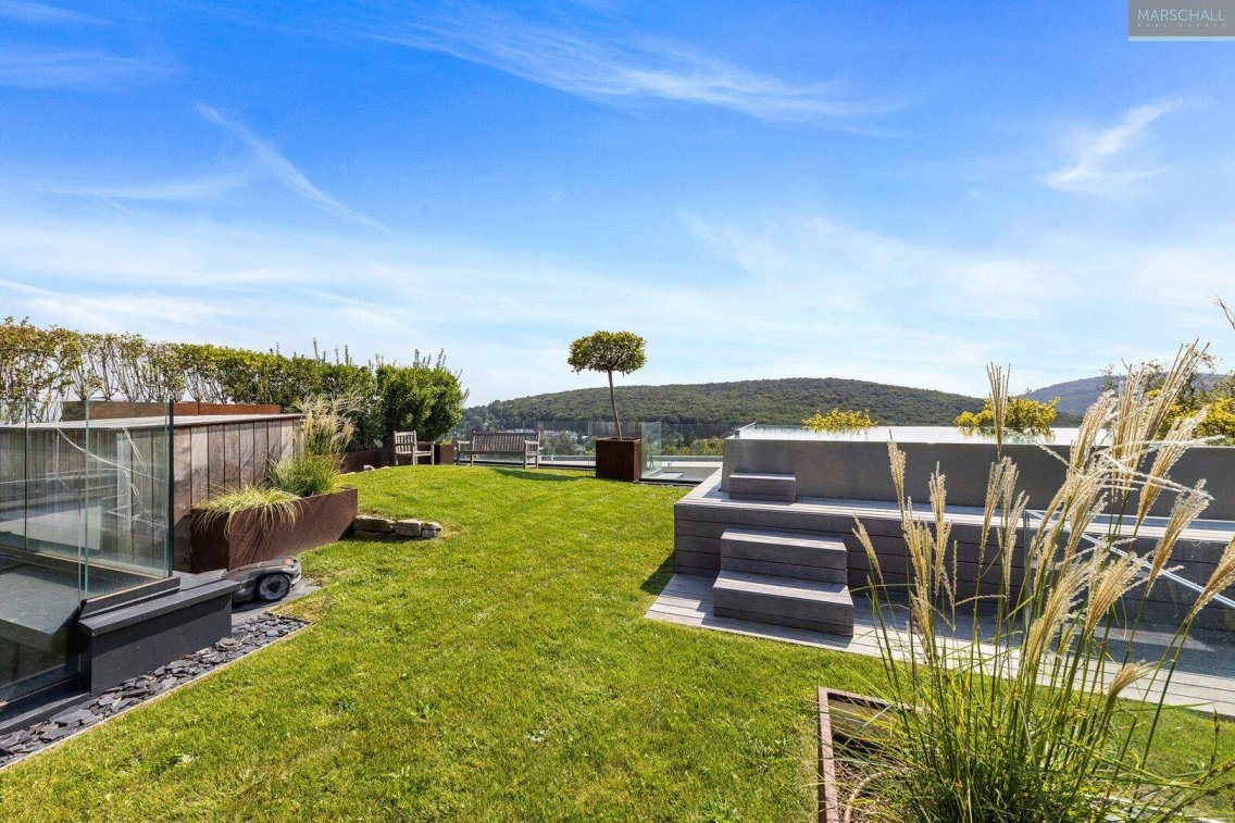 LAGEDieses luxuriöse Penthouse befindet sich in einem eleganten, neu errichteten Haus mit nur wenigen Apartments in außergewöhnlich schöner Aussichtslage direkt am Waldesrand. Es erstreckt sich über zwei Etagen, verfügt über einen sensationellen Dachgarten mit Pool und ist südwestseitig ausgerichtet.Das Ensemble besticht durch seine besondere Architektur sowie die hochwertige Ausstattung. Eine weitere Besonderheit stellt der große Garten zur gemeinschaftlichen Nutzung mit Holz-Salettl und Swimmingpool dar, sowie das top ausgestattete Inhouse-Gym. Die großzügige Garage mit überbreiten Stellplätzen mit E-Anschlüssen rundet dieses Immobilienangebot ab.RAUMAUFTEILUNGDie beiden Wohnebenen dieses einzigartigen Penthouses können komfortabel entweder über den direkten Lift oder über das elegante Stiegenhaus erreicht werden und sind außerdem mit einem weiteren internen Privatlift barrierefrei verbunden.Das Wohngeschoss besteht aus einem weitläufigen Wohn-Essbereich mit offener Küche und vorgelagerter, großzügiger Süd-Terrasse mit traumhaftem Blick über Wien, einer Diele mit Gäste-Toilette und Wirtschaftsraum. Auf der gartenseitigen N/W-Terrasse befindet sich auch der Aufgang zum Dachgarten.In der darunter liegenden Ebene, die ebenfalls einen separaten Eingang mit direktem Liftausstieg hat, befinden sich eine weitere elegante Diele, das Master-Schlafzimmer mit Bad und Toilette en-suite, großes Ankleidezimmer mit Tageslicht und einer Süd-Terrasse mit Fernblick, sowie drei weitere Schlafzimmer, jeweils mit eigenem Bad, zwei davon mit gartenseitiger Terrasse.Ein besonderes Highlight ist der uneinsehbare begrünte Dachgarten mit Infinitypool und sensationellem Ausblick über die Stadt und den Wienerwald.AUSSTATTUNGDie hochwertige Ausstattung umfasst:Dachgarten mit Infinity-PoolEnergiesparende Raumheizung, Klimatisierung und WarmwasseraufbereitungHochwertige Holz-Alu Fenster mit 3-fach VerglasungRaffstore Sonnenschutz für Fenster und FenstertürenJedes Schlafzimmer verfügt über ein luxuriös ausgestattetes BadezimmerGroße, gepflegte Gartenanlage mit Pool, Außendusche und Holz-Salettl zur gemeinsamen NutzungFitnessraum mit modernsten Fitnessgeräten von TechnogymRaumhöhen mit bis zu 2,80 mSmart Living System für Temperaturregelung, Sonnenschutz, Gegensprechanlage und AlarmIntelligente Liftanlage mit RFID-Chip für Aufzugsruf und SteuerungTerrassen und Balkone mit Glasbrüstungen und Alu-HolzverkleidungLandhausdielen und edles, großformatiges Feinsteinzeug, sowie Armaturen von Dornbracht und HansgroheGroße Tiefgarage mit E-LadestationenINFRASTRUKTURDie hervorragende Lage am Stadtrand direkt beim Wienerwald und den Weinbergen bietet eine erstklassige Lebensqualität und zahlreiche Sport- und Freizeitmöglichkeiten. Im Nahbereich befinden sich Heurigenlokale, Restaurants, Einkaufsmöglichkeiten für den täglichen Bedarf, schulische Einrichtungen (insbesondere die AIS American International School) und öffentliche Verkehrsmittel (Autobuslinie 35A, 43A). Das Stadtzentrum, der Flughafen sowie die Westautobahn sind gut erreichbar.INFORMATIONBei Interesse können 3 (Nr. 20, 21, 15) Stellplätze in der Tiefgarage um je € 40.000,-- erworben werden. Die Garagen-Betriebskosten belaufen sich derzeit pro Monat und Stellplatz auf € 6,68 + 20% USt.Die monatlichen Heizkosten betragen derzeit € 179,01 + 20% USt,Provision: 3% + 20% USt.Oben angeführte Angaben basieren auf Informationen und Unterlagen des Eigentümers/der Eigentümerin und sind unsererseits ohne Gewähr.Wir weisen darauf hin, dass zwischen dem Vermittler und dem zu vermittelnden Dritten ein familiäres oder wirtschaftliches Naheverhältnis besteht.Der Vermittler ist als Doppelmakler tätig.