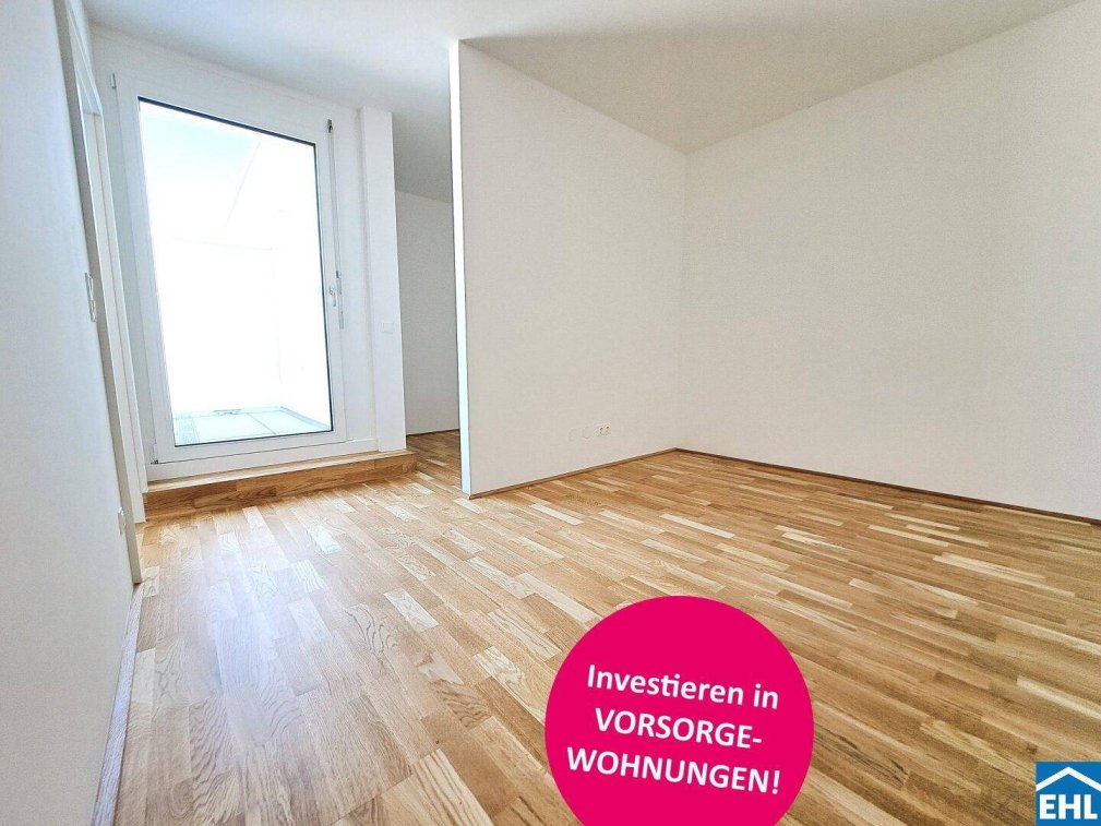 Von Mietinteressenten viel nachgefragte Wohnungsgrößen von 1,5 bis 3 Zimmer gemeinsam mit wunderschönen Außenbereichen wie Gärten, Terrassen oder Loggien bieten die besten Voraussetzungen für Ihre neue Vorsorgewohnung!Profitieren Sie von einer optimalen, langfristigen Anlagemöglichkeit und lukrieren Sie bereits in Kürze Mieteinnahmen!Das Projekt58 Wohnungen auf 2 Stiegen1,5 -3 Zimmer Wohnflächen von 32 – 79 m²Freifläche zu jeder Wohnung – Loggia, Balkon, Garten oder TerrasseTiefgarage mit 58 StellplätzenFahrrad- und Kinderwagenabstellräume in beiden StiegenZusätzlicher Fahrradabstellplatz in den meisten KellerabteilenKleinkinder- und Jugendspielplatz Energieausweis gültig bis 17.02.2031HWB: 24,76 kWh/m²a; Klasse BfGEE: 0,76; Klasse ADie AusstattungParkettböden in den WohnräumenFeinsteinzeugfliesen in den Nass- und AbstellräumenFußbodenheizung, FernwärmeKunststoff-Alu-Fenster mit 3-fach VerglasungSonnenschutz: außenliegende, manuell bedienbare Rollläden Vorbereitungen für Kühlgeräte in den DG-WohnungenBauweise: Stahlbeton Tiefgarage - ParkplätzeEin Stellplatz in der Tiefgarage kann zusätzlich um EUR 20.000, - zzgl. USt. erworben werden.Ein System für die Stromversorgung von privaten E-Ladestationen ist in der Tiefgarage vorbereitet (Installation durch den Käufer).BetriebskostenWohnungen:EUR 2,09 netto/NutzflächeRücklage: € 0,20.-/NutzwertParkplätze:EUR 19,- nettoKaufpreise der Vorsorgewohnungen von EUR 216.000,- bis EUR 399.000,- netto zzgl. 20% USt.Zu erwartender Mietertragvon ca. EUR 11,00 bis EUR 14,00 netto/m²Provisionsfrei für den Käufer!