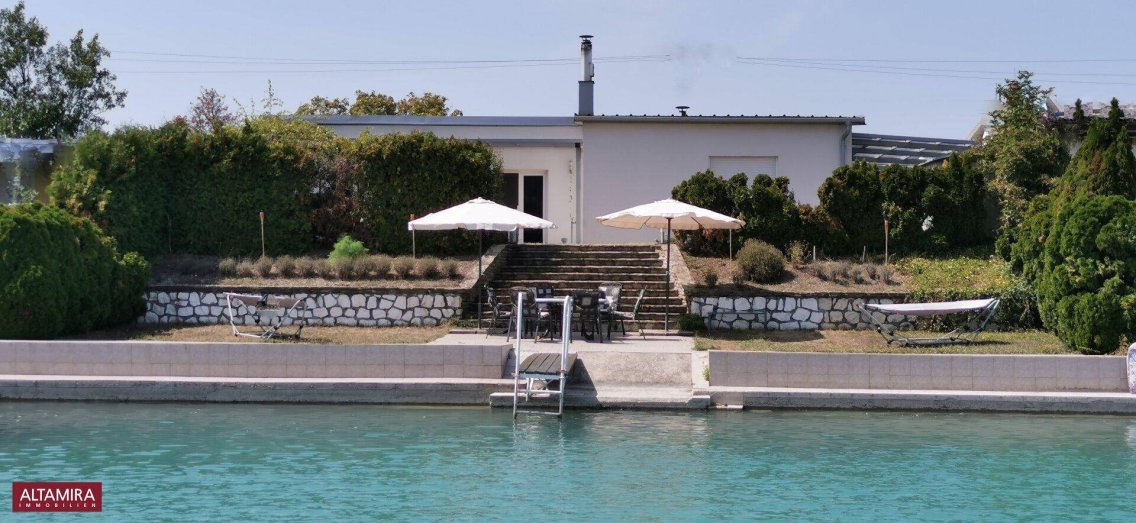 Am wunderschönen türkisblauen Dürrsee wird einmalig ein Doppelhaus verkauft. Ein richtiges Raumwunder erwartet Sie, lassen Sie sich überraschen. Vor dem Haus sitzend, überblicken Sie die Längsseite des Sees mit seinem kristallinen Wasser in Trinkwasserqualität.Von dem Platz aus, gelangen Sie über eine ausladende Treppe, ähnlich der spanischen Treppe in Rom, zur sehr großzügig angelegten Seeterrasse. Hier können Sie direkt am Wasser den Tag ausklingen lassen, sonnenbaden und mit Freunden einfach das Leben genießen. Ein kleiner Steg führt Sie direkt zum Tretboot, der den Wasserspaß hier am Dürrsee bereichert.Genießen auch Sie hier die lauwarmen Nächte im Sommer und romantische Zeiten beim offenen Kamin in der Winterszeit. Ein Haus für jede Jahreszeit. Vom Schlafzimmer aus blicken Sie direkt auf den See und in die Morgensonne. An diesem einmaligen Platz mit einer Doppelparzelle und einem Doppelbungalow können Sie mühelos abschalten und chillen. Lebensqualität pur. Hier wird ihr Traum von einem eigenen Seehaus wahr. Der türkisblaue Dürrsee befindet sich in der Nähe von Laxenburg, ca. 25 Min von der Innenstadt Wien entfernt. Die Größe des Hauses ist mit seinen 150m² beachtlich und vor allem leistbar.Es erwarten Sie:Offener KaminEsszimmerModerne KücheBadezimmer mit Doppelwaschtisch, Eckbadewanne und separater DuscheZusätzlich ein separates WC2 Extrazimmer (Kinderzimmer)Großzügiges Schlafzimmer mit Türe zur Terrasse24 m² überdachte Wohnterrassebreite GängeCa. 21m² unbenützter Raum zur individuellen GestaltungCarport für 3 AutosWeitläufige AußenflächeDas Haus wird unmöbliert übergeben.Die weitläufige Außenanlage dieses großzügigen Bungalows erfreut sich ihrer individuellen Gestaltung. Hier können Sie Ihre persönliche Note einbringen. Die Terrasse direkt beim Haus ist zusätzlich noch überdacht.Größe des Hauses: ca. 150m²Bitte beachten Sie. Das Haus steht auf einem Mietgrund!Kaufpreis des Hauses: € 336.900,- zusätzlich Miete des Grundes monatlich : € 1.330,- Die Maklerprovision ist 3% vom Kaufpreis + 20% Ust.In der Umgebung befinden sich einige der schönsten Golfplätze: Colonyclub Himberg, Ebreichsdorf, Fontana... Tennisplätze sind in der Anlage vorhanden. Reitställe sind in der unmittelbaren Nähe.Überzeugen Sie sich selbst von dieser hervorragenden Lebensqualität mit diesem einzigartigen großzügigen Haus am Dürrsee und vereinbaren Sie gleich einen Besichtigungstermin unter der Tel. Nr: [Telefonnummer entfernt] (Frau Moser) oder per E-Mail: [E-Mail-Adresse entfernt].Sie bekommen von mir das Rundumpaket, Haus und Mietvertrag, vermittelt.Ausstattung: Ziegel/massiv gebautWärmedämmung 12 cmKamin/ Rauchfangsystem Schiedel für feste BrennstoffeElektrische Fußbodenheizung in den Haupträumen Wohnküche / offene Küche mit Blick zum SeeGeräumiger Abstellraum angrenzend zur KücheZusätzliche 2 Räume zur individuellen GestaltungSehr großes Schlafzimmer mit Blick auf den See2 weitere Zimmer für homeoffice, Gäste und/oder KinderSüdostbalkon / -terrasseBad mit Fenstern, Dusche und EckbadewanneZusätzliches getrenntes WCEingangstür mit hohem Sicherheitsstandard EVVADoppel- / Mehrfachverglasung der Fenster Rollläden mit FliegengitterGroßzügige Seeterrasse: ca. 120 m²Flachdach mit Stahlbetonträger Wir weisen darauf hin, dass wir in diesem Fall als Doppelmakler tätig sind und ein wirtschaftliches Naheverhältnis mit dem Vermieter haben.Auf Grund der EU-Richtlinien zum Fernabsatz- und Auswärtsgeschäfte-Gesetz bitten wir um Ihr Verständnis, dass wir Ihnen seit 13. Juni 2014 die Objekt-Unterlagen erst nach Ihrer Bestätigung, dass Sie unser Tätigwerden wünschen und über Ihre Rücktrittsrechte aufgeklärt wurden, zusenden können. Bevor Sie die Unterlagen zugesendet bekommen, erhalten Sie eine Mail, in der Sie diese beiden Punkte bestätigen müssen. Vielen Dank für Ihr Vertrauen!Hinweis gemäß Energieausweisvorlagegesetz: Ein Energieausweis wurde vom Eigentümer bzw. Verkäufer, nach unserer Aufklärung über die generell geltende Vorlagepflicht, sowie Aufforderung zu seiner Erstellung noch nicht vorgelegt. Daher gilt zumindest eine dem Alter und der Art des Gebäudes entsprechende Gesamtenergieeffizienz als vereinbart. Wir übernehmen keinerlei Gewähr oder Haftung für die tatsächliche Energieeffizienz der angebotenen Immobilie.