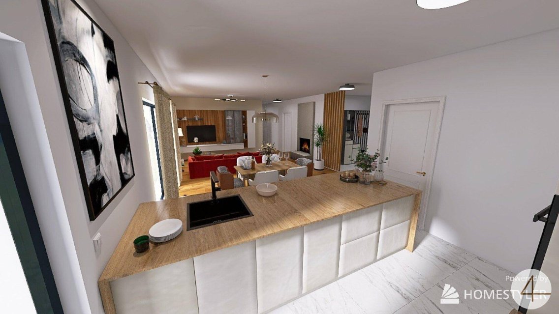 Der erste Eindruck zählt! Mit seinem eleganten Walmdach und den großzügigen Glaselementen strahlt dieser Bungalow eine einladende Modernität aus. Die lichtdurchfluteten Räume dank der großen Fensterfronten schaffen eine harmonische Verbindung zwischen Innen- und Außenbereich und lassen die Natur direkt ins Haus. Hier wohnen Sie hell und freundlich, und die hochwertige Ausstattung sorgt für ein angenehmes Raumklima. Durch den großen offenen Wohnbereich sind Sie keinesfalls bei der Wahl Ihrer Innenausstattung eingeschränkt. .Genießen Sie gemeinsame Mahlzeiten am großzügigen Esstisch und erleben Sie unvergessliche Momente in stilvollem Ambiente. Der nahtlose Übergang vom Wohnbereich zur Küche fördert die Kommunikation und schafft eine behagliche Atmosphäre. Durch den Ausgang auf die Terrasse mitten im Raum, haben Sie eine natürliche Erweiterung vom Wohnzimmer in den Außenbereich.