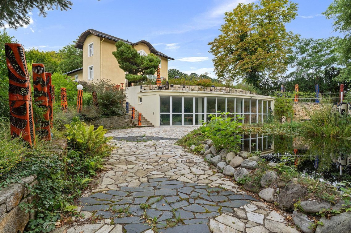 Die Villa wird von einem liebevoll gestalteten Garten umrahmt, der mit Teich, einer Vielzahl an Obstbäumen, drei großzügigen Terrassen und einem Pavillon ein harmonisches Ensemble bildet. Dieser private Rückzugsort bietet Naturliebhabern und Ruhesuchenden gleichermaßen eine Oase der Entspannung und Erholung.