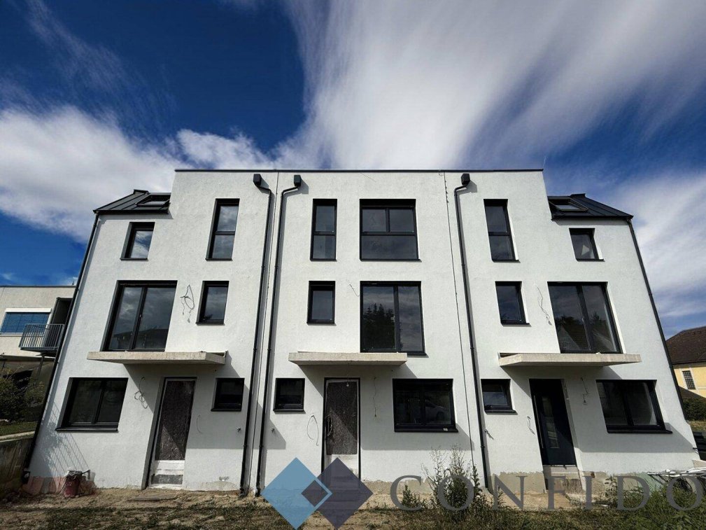 Auf dem rund 630 m² großen Grundstück werden 3 Reihenhäuser errichtet. Die Häuser erstrecken sich über 3 Wohnebenen und verfügen über 5 Zimmer, Eigengärten sowie über jeweils eine Terrasse und 2 Balkone. Im vorderen Bereich der Liegenschaft wird sich die allgemeine Zufahrt sowie der Stellplatzbereich befinden. Es werden 2 Stellplätze pro Wohneinheit zur Verfügung stehen. Die Wasser und Stromversorgung erfolgt aus dem öffentlichen Netz. Die Beheizung erfolgt mittels einer umweltfreundliche Luft - Wärmepumpe über die Fußbodenheizung. Auf den Dachflächen sind die Vorbereitungen für Photovoltaik- oder Solaranlagen vorgesehen. Das Gebäude wird in einer Kombination aus Ziegel und Stahlbeton in Massivbauweise errichtet werden. Es werden ausschließlich Wienerberger Porotherm Ziegel verwendet. Die Fußböden der Reihenhäuser werden mit Trittschalldämmung ausgeführt und alle Innenwände aus Wienerberger Ziegeln gemauert. Sämtliche Außenwände werden mit einer 20cm dicken Wärmedämmung versehen sowie sämtliche Verblechungen in Aluminiumblech beschichtet ausgeführt. Die Wohnräume und Sanitärräume werden mit Zwischendecken und Einbaubeleuchtung (Konzeptbeleuchtung LED) versehen werden.Die Reihenhäuser befindet sich schon in der letzten Bauphase. Die Fertigstellung ist im 4. Quartal 2025 geplant!HAUS 1:Zum Verkauf gelangt dieses ideal geplante und geschmackvoll ausgestattete, rund 160m² große Eckreihenhaus mit 5 Zimmern, Terrasse und ca. 62m² Eigengarten nahe der Grenze Wiens. Es liegt in sehr ansprechender Lage inmitten von Vösendorf. Der Anteil der Grundfläche des Hauses beträgt rund 165m². Das Haus verfügt über 3 Wohnebenen und ist wie folgt aufgeteilt: