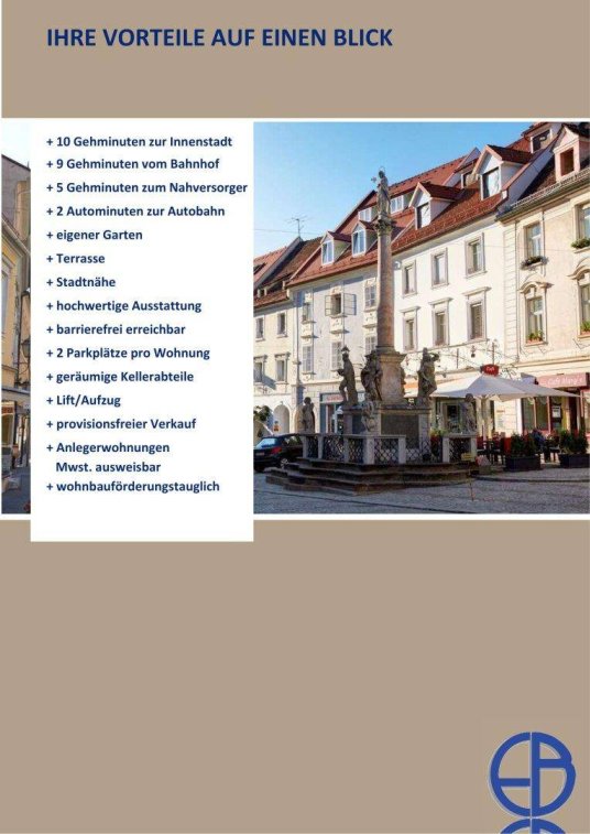 Das Wohnprojekt überzeugt durch seine zentrale Lage - Ritzingerstraße 4 - in der Stadt Wolfsberg, der Stadtkern ist nur 10 Gehminuten entfernt.Insgesamt werden nur 9 Wohnungen errichtet.Mit dem Bau wurde bereits begonnen. Übergabe Sommer/Herbst 2026Die Raumaufteilung verzichtet auf große Gänge und Vorräume.Jede der 6 Wohnungen im EG verfügen über einen eigenen Garten - Südausrichtung - mit Zugang direkt von der Wohnung aus.Die Wohnungen im 1. und 2. Stock verfügen über eine Dachterrasse oder Balkon - alle Süd oder Westausrichtung von dem einerseits der Blick auf die Koralpe bzw. die Saualpe, und anderseits auf die Karawanken geboten wird.Mit Personenlift direkt in das Penthouse !Alle Wohnungen sind mit barrierefreier Dusche ausgestattet wobei im Penthouse das Badezimmer zusätzlich mit einer Badewanne ausgestattet ist.Die Heizung erfolgt über eine Luftwärmepumpe und die Wärmeabgabe erfolgt mittels einer FußbodenheizungZu jeder Wohnung gehören zwei Autofreistandplätze die im Kaufpreis schon enthalten sind.Die Zufahrt erfolgt über die Ritzinger Straße. Top 1 = VERKAUFTTop 2 = VERKAUFTTop 3 = Wohnfläche im EG - 66,31 m² Kaufpreis € 298.395,--Top 4 = Wohnfläche im EG - 64,19 m² Kaufpreis € 288.855,--Top 5 = Wohnfläche im EG - 64,21 m² Kaufpreis € 288.945,--Top 6 = Wohnfläche im EG - 64,74 m² Kaufpreis € 291.330,--Top 7 = VERKAUFTTop 8 = Wohnfläche im 1. Stock - 58,88 m² Kaufpreis € 264.960,--Top 9 = VERKAUFTDer Verkauf erfolgt PROVISIONSFREITelNr.: [Telefonnummer entfernt] Mail: [E-Mail-Adresse entfernt]Hinweis gemäß Energieausweisvorlagegesetz: Ein Energieausweis wurde vom Eigentümer bzw. Verkäufer, nach unserer Aufklärung über die generell geltende Vorlagepflicht, sowie Aufforderung zu seiner Erstellung noch nicht vorgelegt. Daher gilt zumindest eine dem Alter und der Art des Gebäudes entsprechende Gesamtenergieeffizienz als vereinbart. Wir übernehmen keinerlei Gewähr oder Haftung für die tatsächliche Energieeffizienz der angebotenen Immobilie.