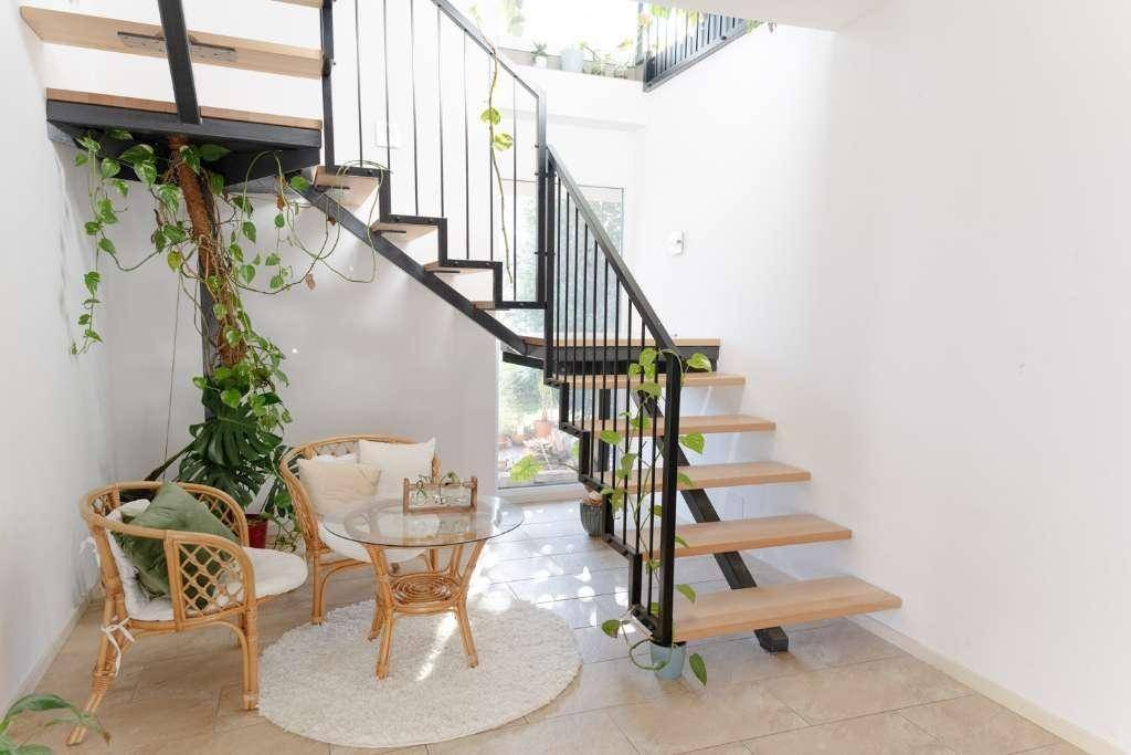 • Offener Stiegenaufgang mit gemütlicher Sitzecke vor dem Schwedenofen