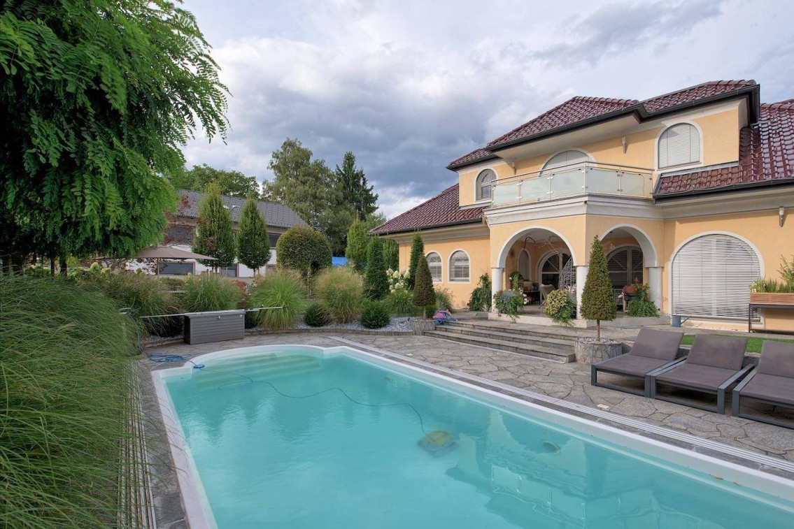 Dieses exklusive Einfamilienhaus vereint stilvolles Wohnen mit hochwertiger Ausstattung und durchdachter Raumaufteilung auf drei Ebenen. Mit einer Gesamtwohnfläche von ca. 320 m² bietet die Immobilie ausreichend Platz für höchste Wohnansprüche, ergänzt durch einen großzügigen Garten mit Pool, mehreren Terrassen sowie einem privaten Wellnessbereich im Untergeschoss.