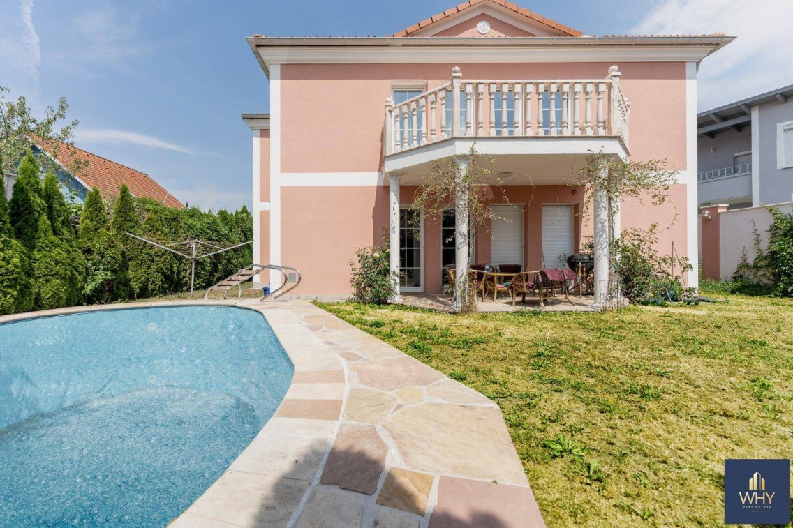 Dieses wundervolle Einfamilienhaus überzeugt durch eine durchdachte Raumaufteilung auf zwei weitläufigen Etagen sowie einen beeindruckenden Garten mit Pool – und schafft so ein Wohnerlebnis der besonderen Art. Auf einer Wohnnutzfläche von ca. 190 m², gelegen auf einem rund 640 m² großen Baurechtsgrund, genießen Sie jede Menge Raum für Ihre individuellen Wohnträume.Bereits beim Betreten des Hauses empfängt Sie ein Eingangsbereich, der sofort ein Gefühl von Ankommen vermittelt. Eine großzügige Garderobe sorgt für Komfort – für Sie ebenso wie für Ihre Gäste.Im Erdgeschoss befindet sich ein modernes Badezimmer sowie ein gemütliches Gästezimmer, das Privatsphäre und Wohlfühlambiente vereint. Die offen gestaltete Küche mit angrenzendem Essbereich bildet das Herzstück des Hauses – hier können Sie kulinarische Köstlichkeiten erleben.Ein echtes Highlight ist der rund 96 m² große, vielseitig nutzbare Keller. Ob Hobbyraum, Fitnessstudio oder stilvoller Weinkeller – hier haben Sie den Raum, Ihre ganz persönlichen Ideen zu verwirklichen.Über eine stilvolle Treppe gelangen Sie ins Obergeschoss, das mit drei flexibel nutzbaren Zimmern überzeugt – perfekt als Schlafzimmer, Homeoffice oder kreativer Rückzugsort. Das hochwertig ausgestattete Badezimmer bietet echtes Spa-Feeling und lädt zum Entspannen ein.Besonders reizvoll sind die zwei Terrassen auf der Ost- und Westseite des Hauses.