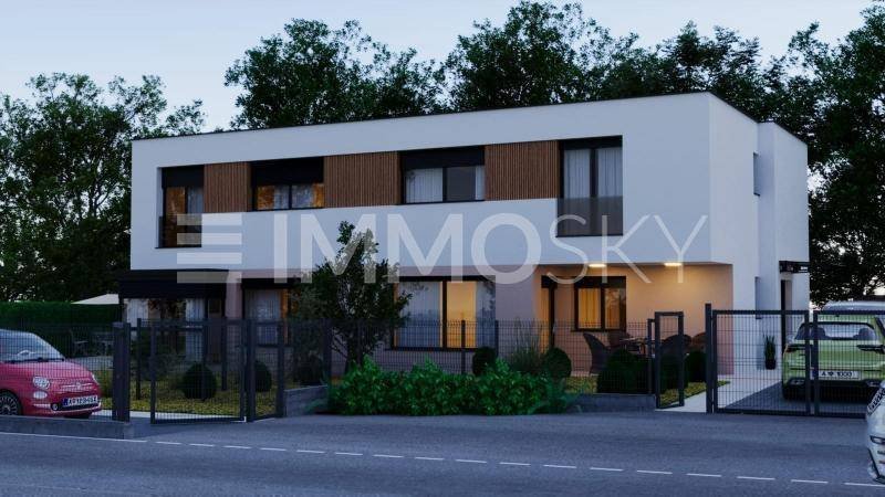 Dieses moderne Doppelhaus überzeugt durch helle, offene Wohnräume, hochwertige Massivbauweise und durchdachte Architektur. Großzügige Fensterfronten schaffen eine harmonische Verbindung zwischen Innenraum und Garten.