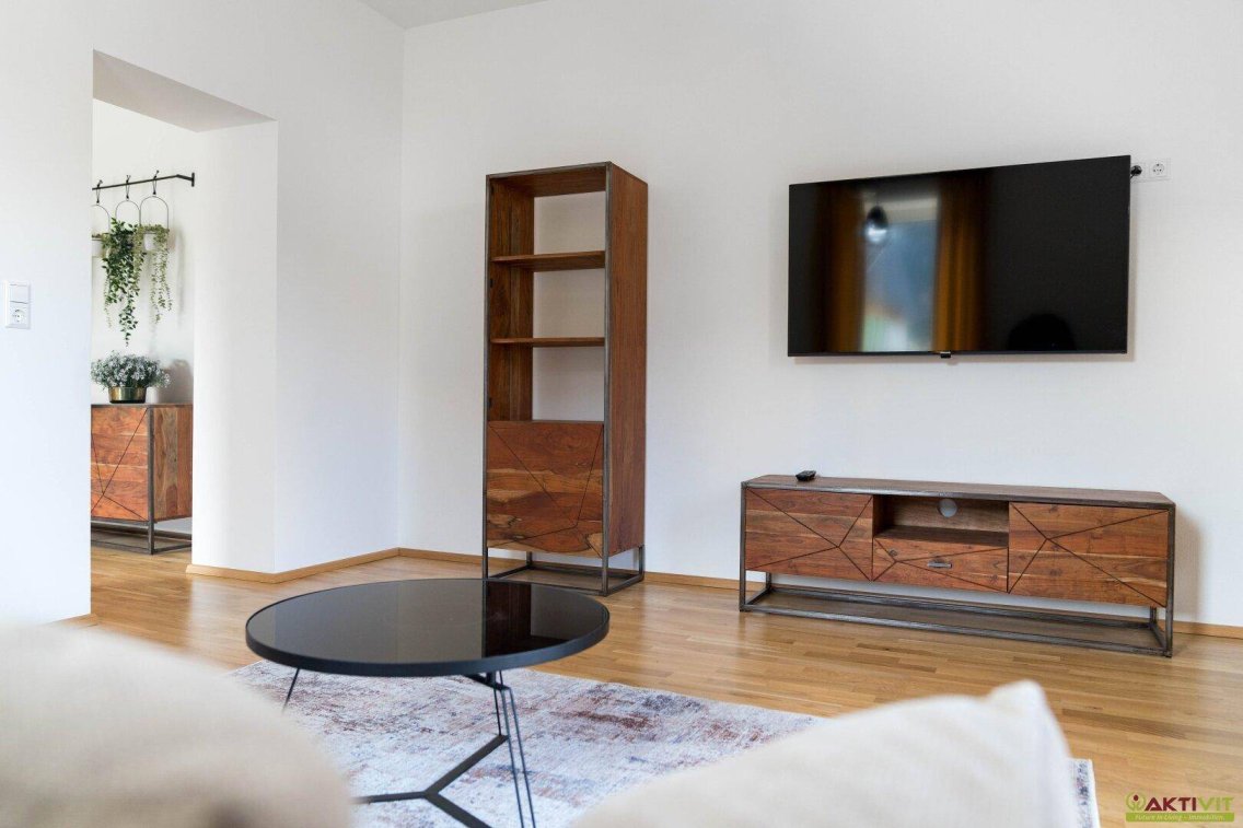 DIE WOHNUNGDie Wohnung liegt im ersten Obergeschoss eines generalsanierten Neubaus und bietet eine Wohnnutzfläche von rund 55 m². Über den Vorraum gelangt man in das Bad sowie in den offen gestalteten Wohn- und Küchenbereich, von dem aus das Schlafzimmer sowie der rund 8 m² große Balkon zugänglich sind. Der Balkon ist nach Südwesten ausgerichtet und in hochwertiger Lärchenholzbauweise ausgeführt – perfekt für sonnige Stunden mit Blick ins Grüne.Zusätzlichen Stauraum bietet ein Kellerabteil mit ca. 3,6 m². Ein eigener KFZ-Stellplatz ist im Kaufpreis enthalten. ZUSTAND UND AUSSTATTUNGDie Wohnung befindet sich in neuwertigem Erstbezugszustand und wird aktuell voll möbliert angeboten. Die hochwertige Möblierung kann auf Wunsch übernommen oder entfernt werden – bei Entfernung reduziert sich der Kaufpreis entsprechend.Unter folgendem Link finden Sie Beispielfotos vergleichbarer Wohnungen im selben Gebäude, welche mit der angebotenen Einrichtung ausgestattet sind: Fotogalerie ansehenAusstattungsdetails umfassen Parkettböden, großformatige Feinsteinzeugfliesen, hochwertige Sanitäreinrichtungen (Marken: Laufen und Geberit) sowie Kunststoff-Alu-Fenster mit Dreifachverglasung. Die Beheizung erfolgt mittels Biomasse-Fernwärme in Kombination mit Fußbodenheizung; eine PV-Anlage unterstützt zusätzlich.Das Gebäude ist barrierefrei, ein Lift ist vorhanden.Zur Beantwortung weiterer Fragen sowie für Besichtigungstermine stehe ich Ihnen gerne täglich - auch am Wochenende - von 08:00 bis 22:00 Uhr zur Verfügung.Ich freue mich über Ihre Kontaktaufnahme,